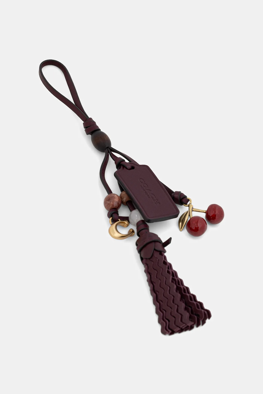 pink gold-tone lettering green leather cords beaded logo pearl embellishment lobster clasp