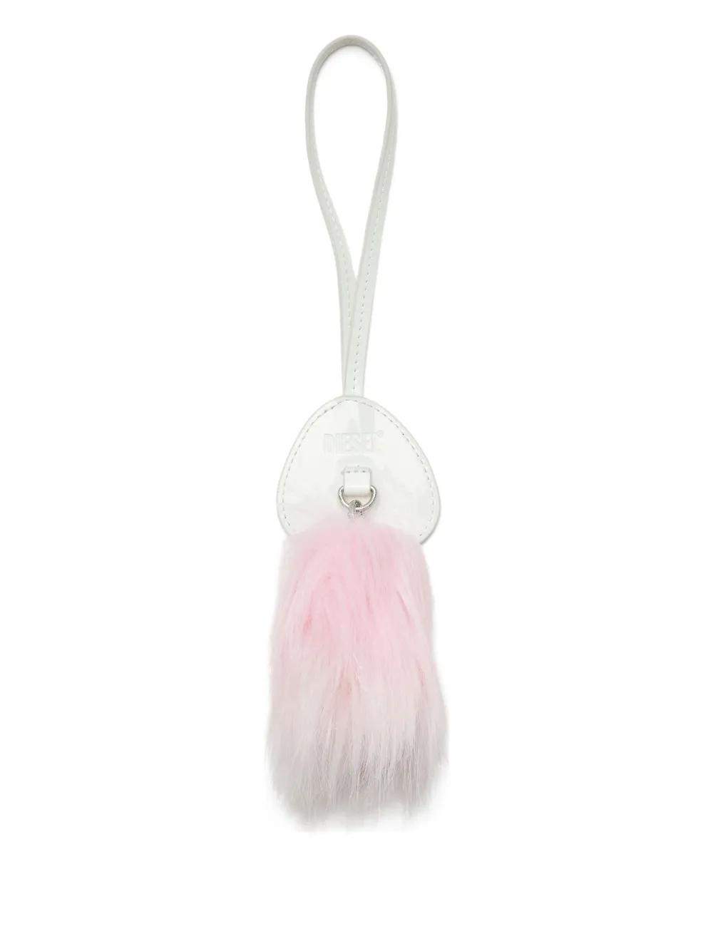 white fur detail loop detail face design silver-tone hardware synthetic composition
