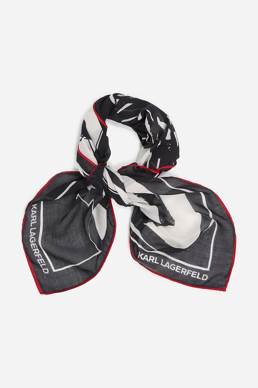 Karl Lagerfeld chusta bawełniana damska kolor czarny wzorzysta A2W33076