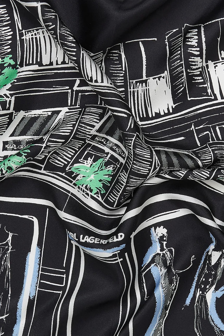 Karl Lagerfeld chusta jedwabna damska kolor czarny wzorzysta A4W33115