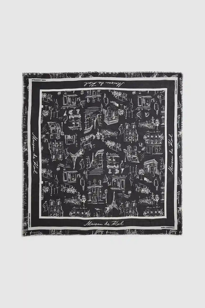 Karl Lagerfeld chusta z jedwabiem K/SKETCH damska kolor czarny wzorzysta A4W33116