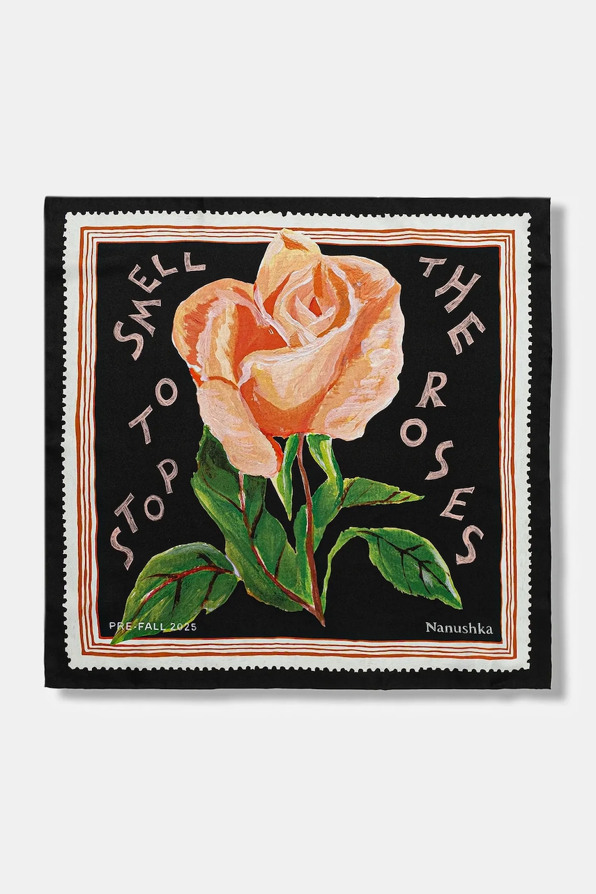 Nanushka chusta jedwabna kolor czarny wzorzysta NU25PFSC00299