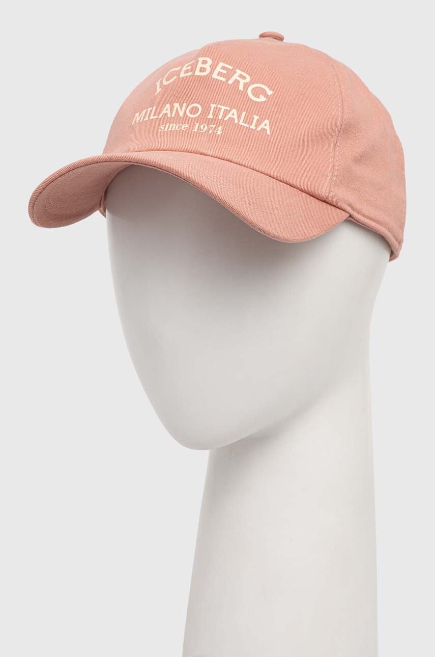 Iceberg czapka z daszkiem bawełniana kolor różowy z nadrukiem