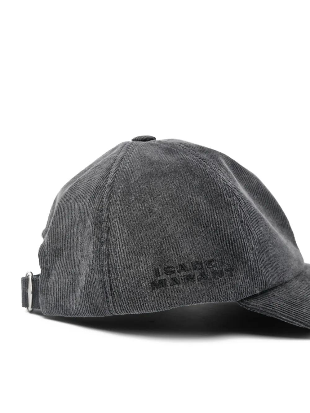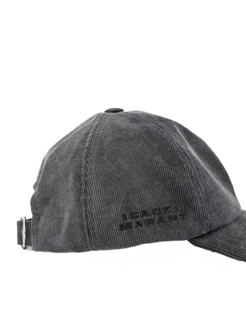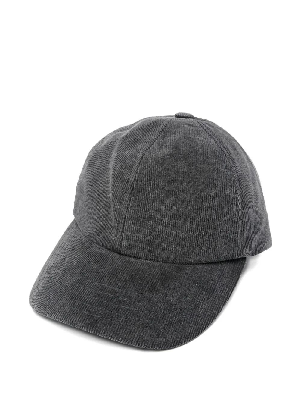 black corduroy texture round crown curved brim adjustable strap embroidered logo