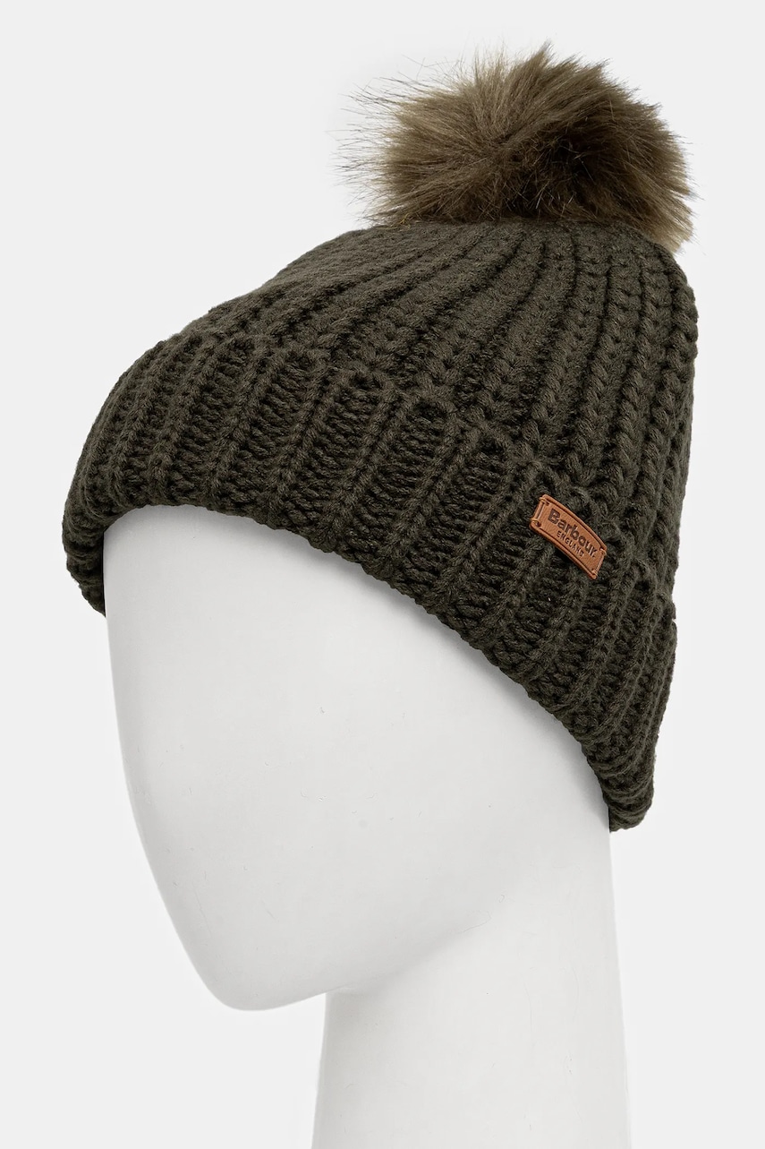 Barbour czapka kolor zielony z grubej dzianiny LHA0336