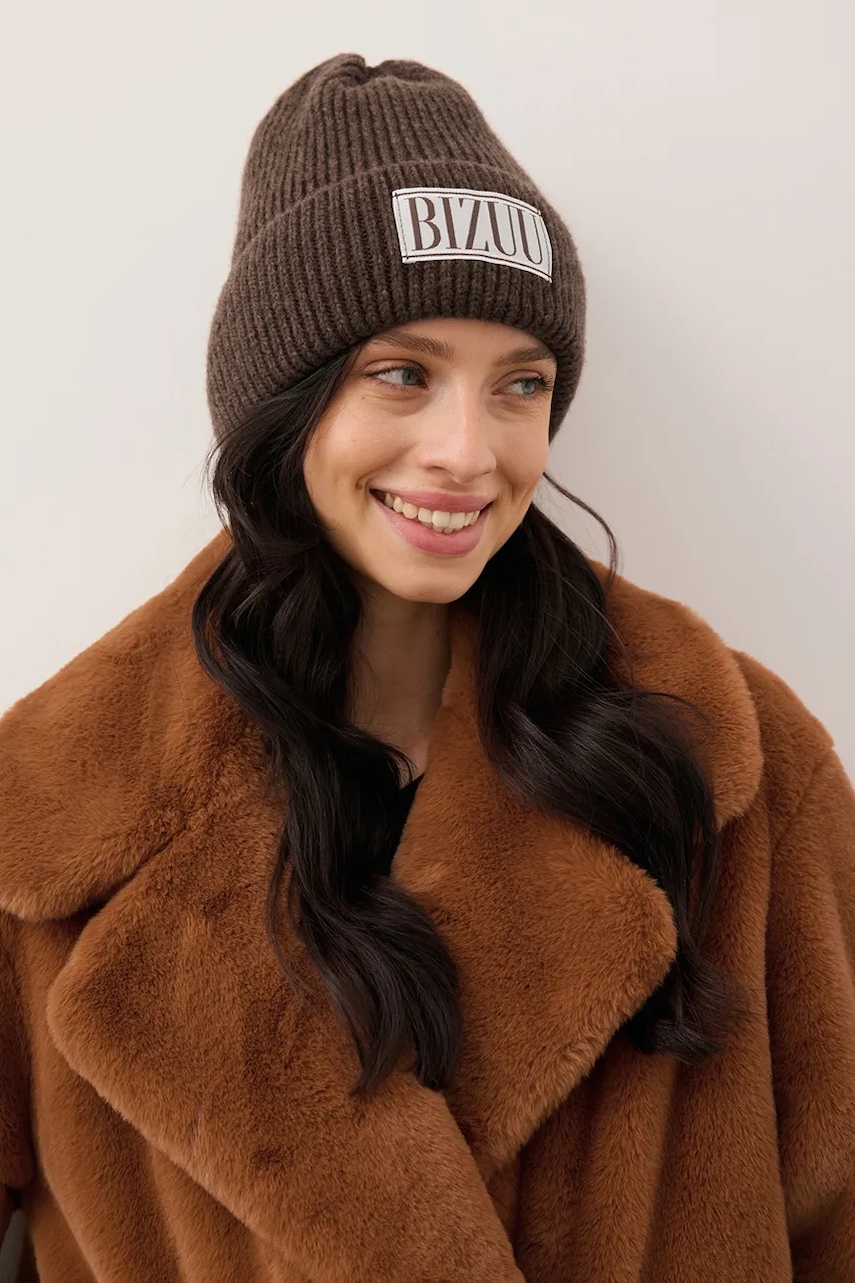 Bizuu czapka z dodatkiem wełny MOYU kolor brązowy MOYU BRĄZOWY