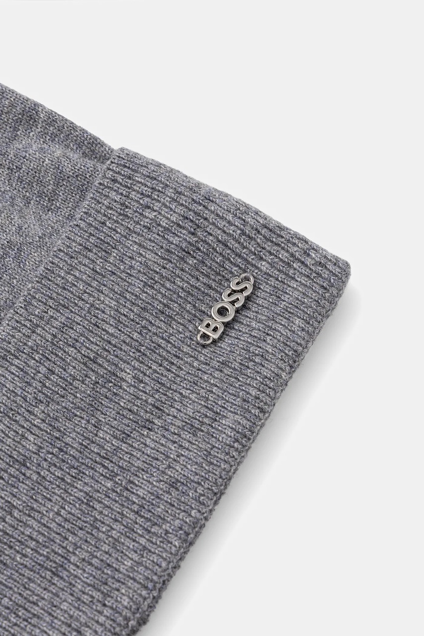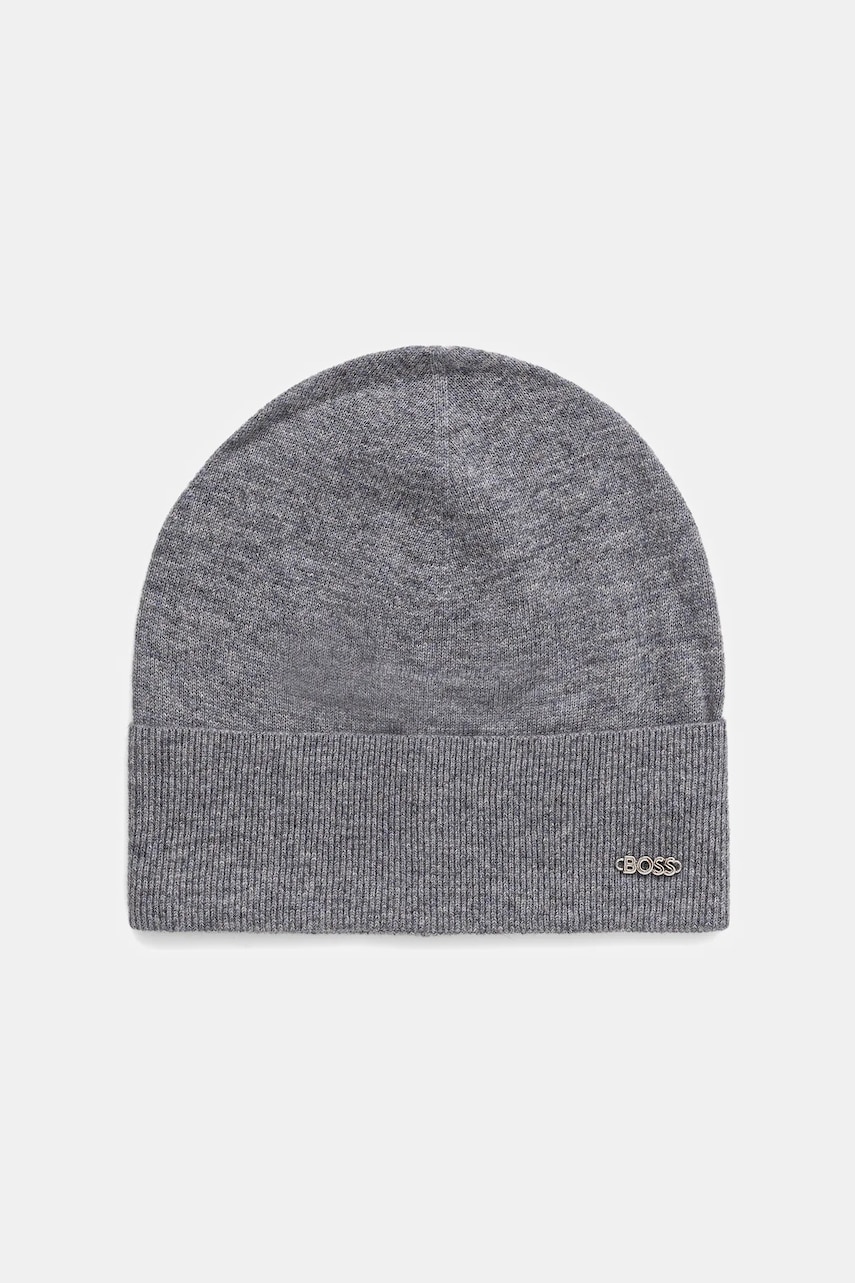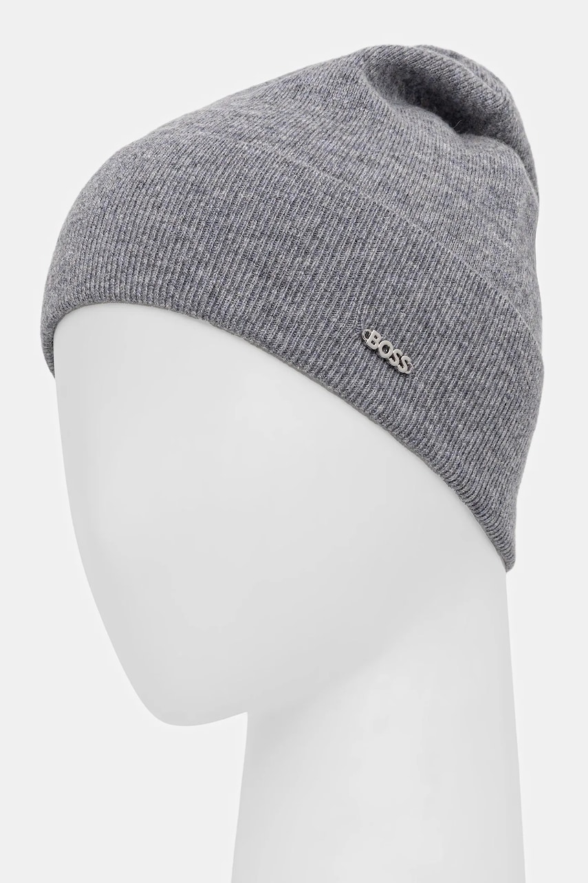 BOSS czapka wełniana kolor szary z cienkiej dzianiny wełniana 50524276