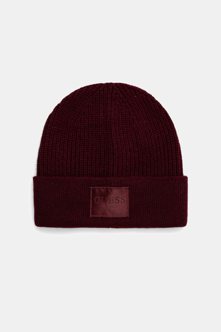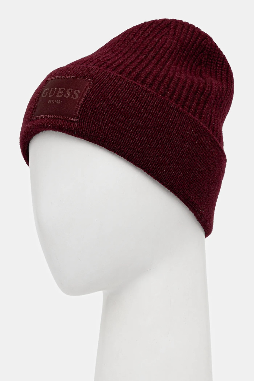 Guess czapka z dodatkiem wełny BRENTON kolor bordowy AW5436 POL03