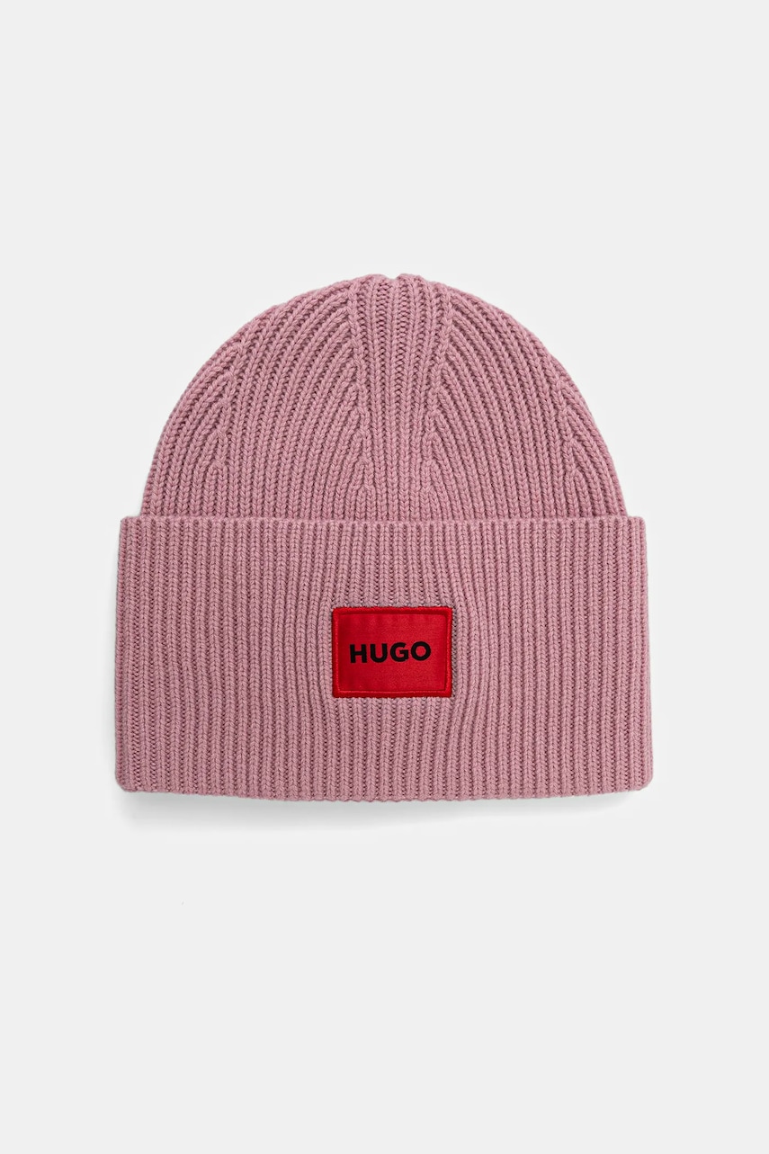 HUGO czapka wełniana kolor różowy z grubej dzianiny wełniana 50502579