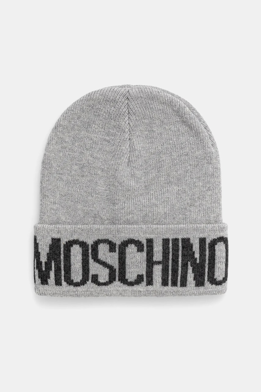 Moschino czapka z domieszką wełny kolor szary z grubej dzianiny M5672 60102