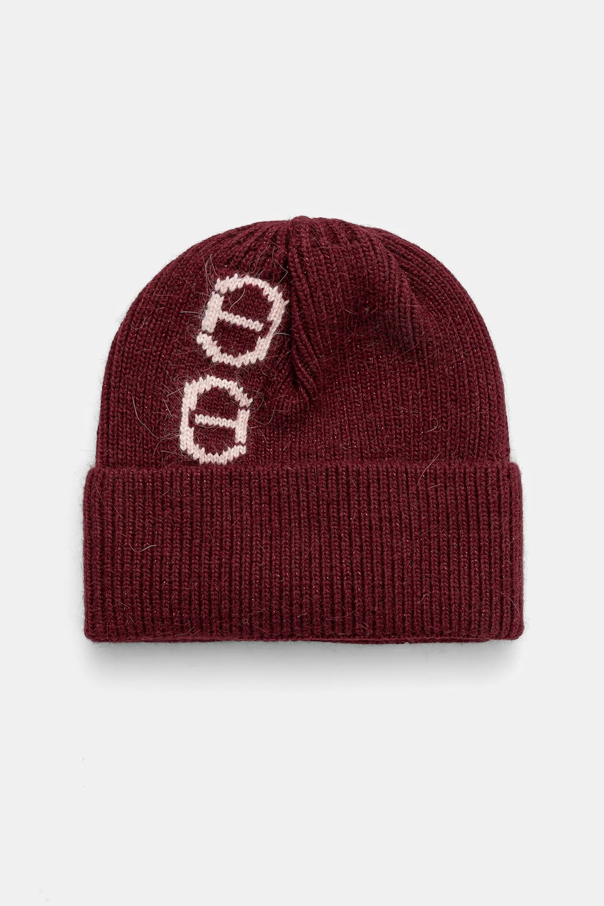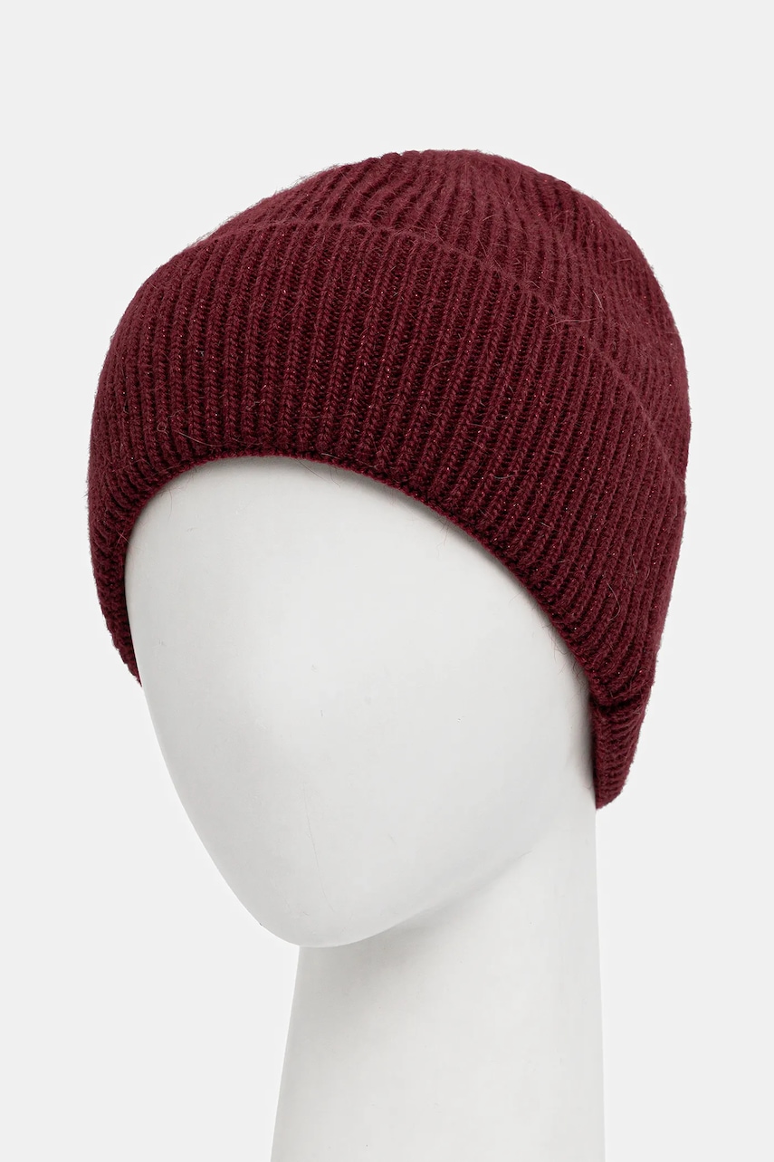 Twinset czapka z dodatkiem wełny kolor bordowy 252TO5201