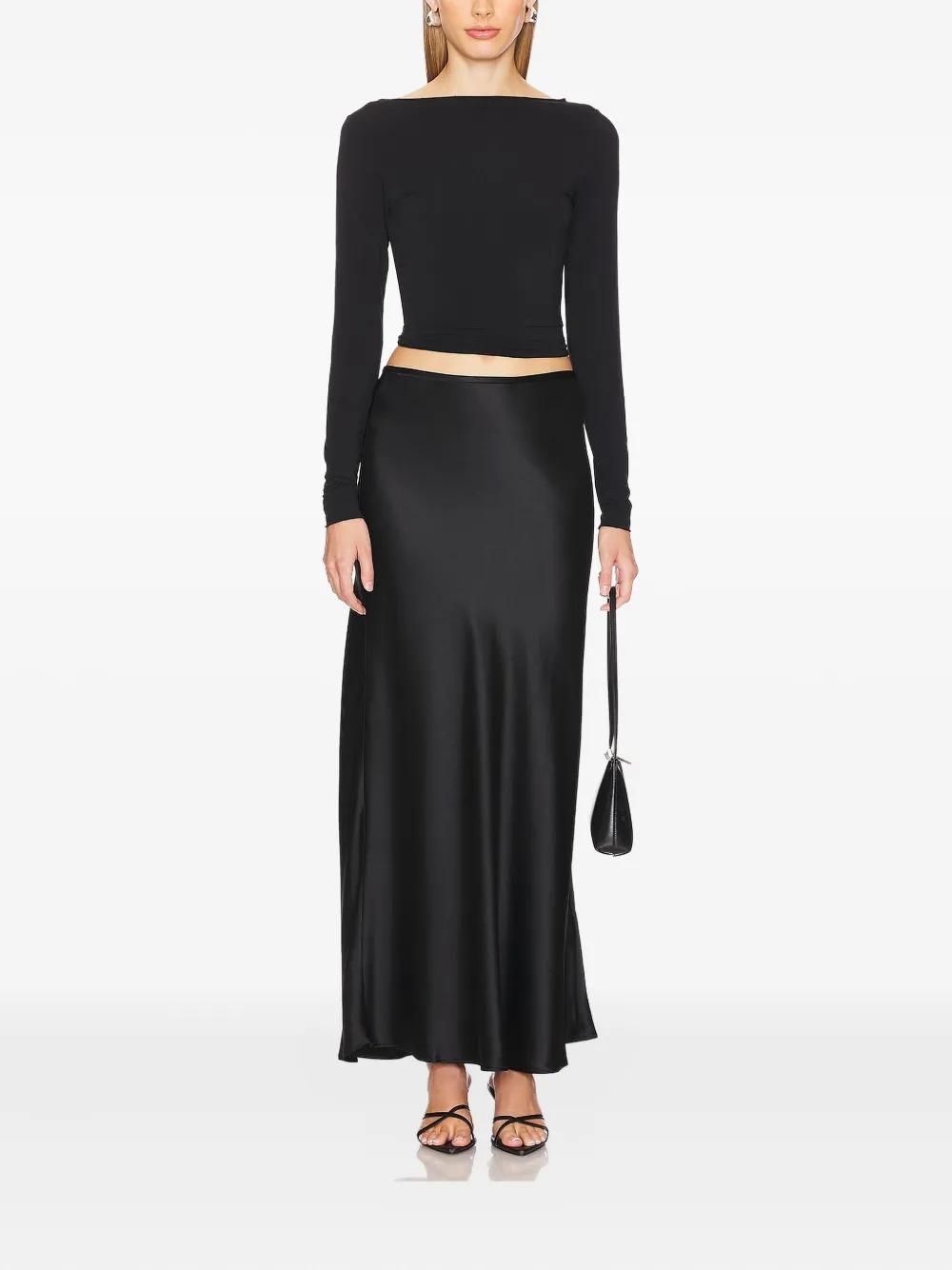 black silk horse pattern A-line shape concealed zip fastening waistband detail