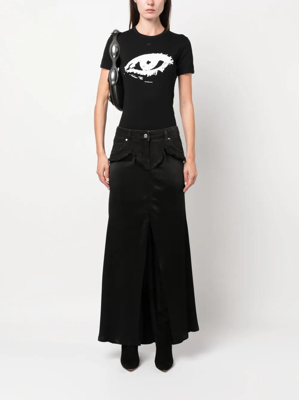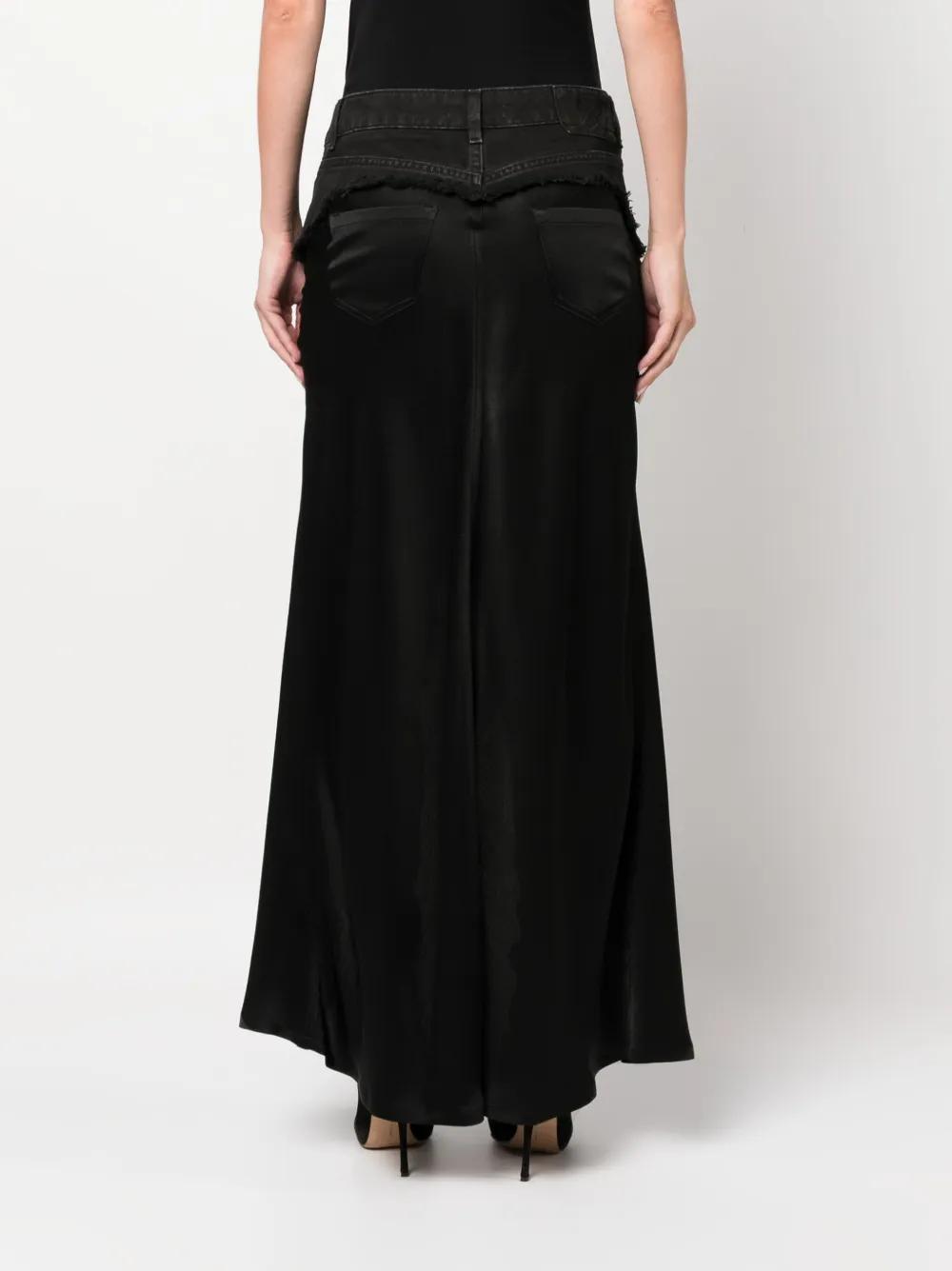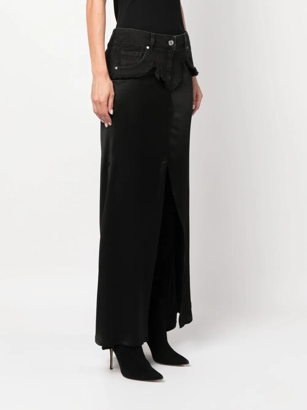 black cotton-silk blend layered design mid-rise front slit ankle-length two rear patch pockets