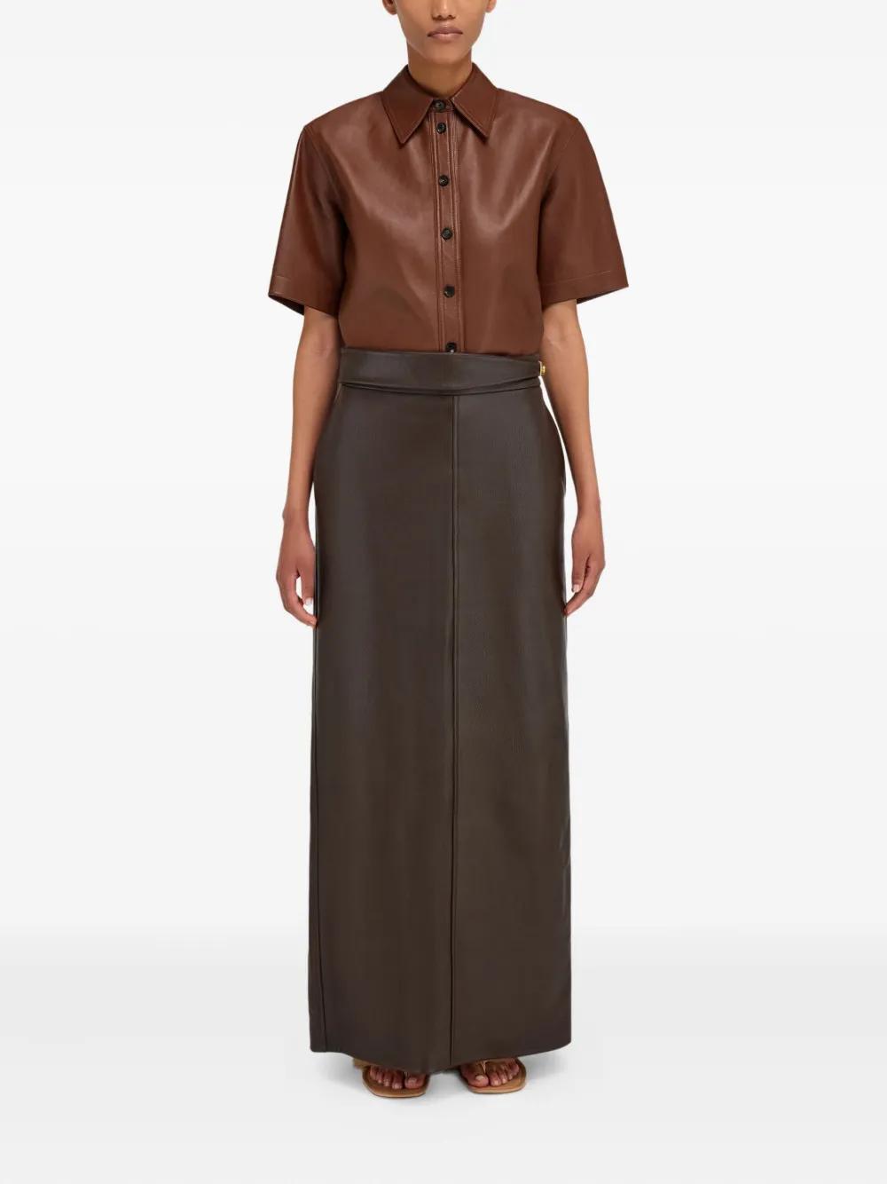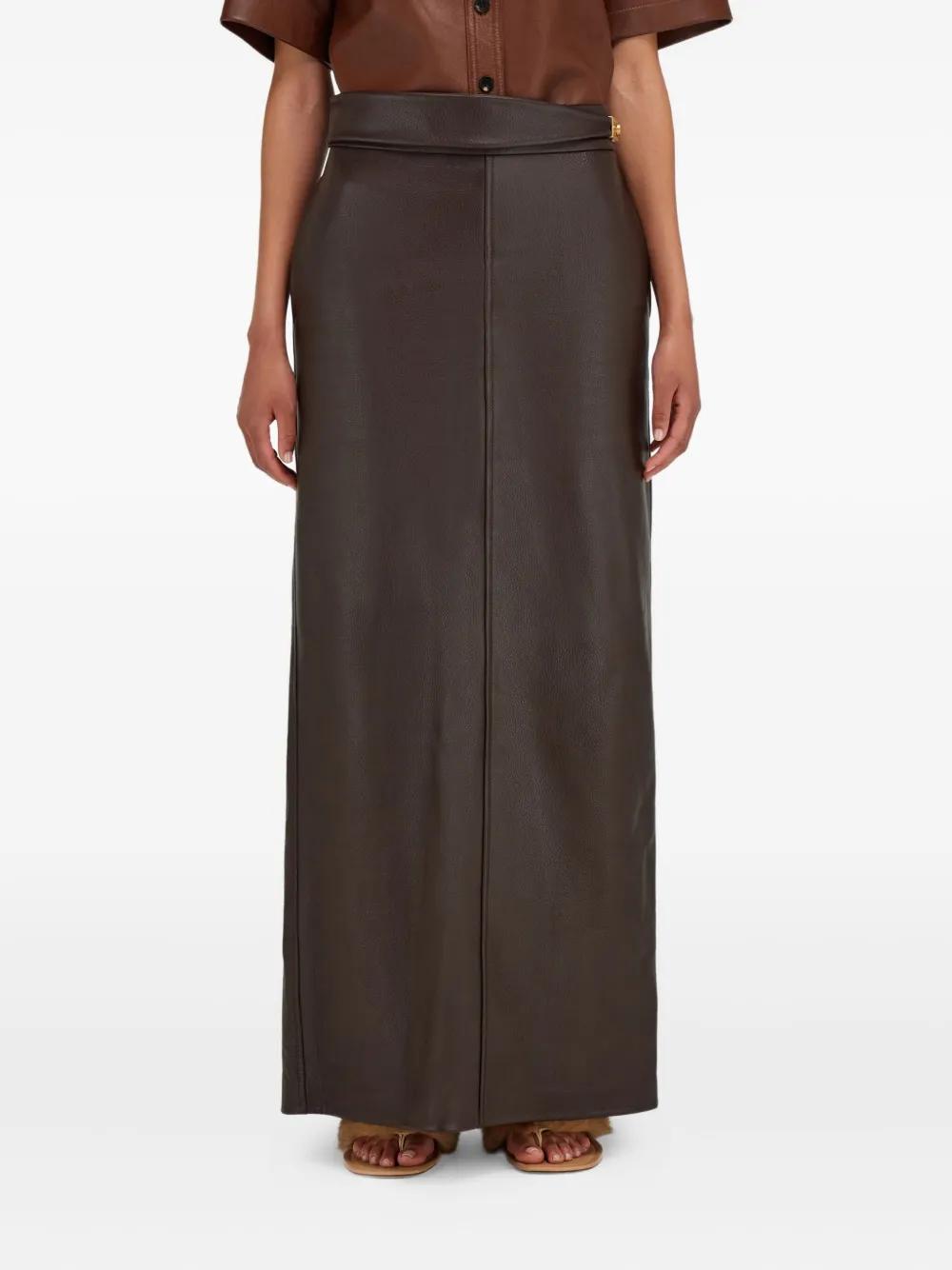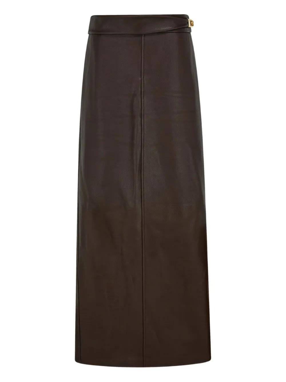 brown leather gold-tone buckle rear slit concealed zip fastening