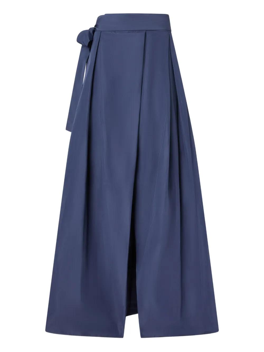 black A-line high waist front tie fastening pleat detailing two side inset pockets side slit