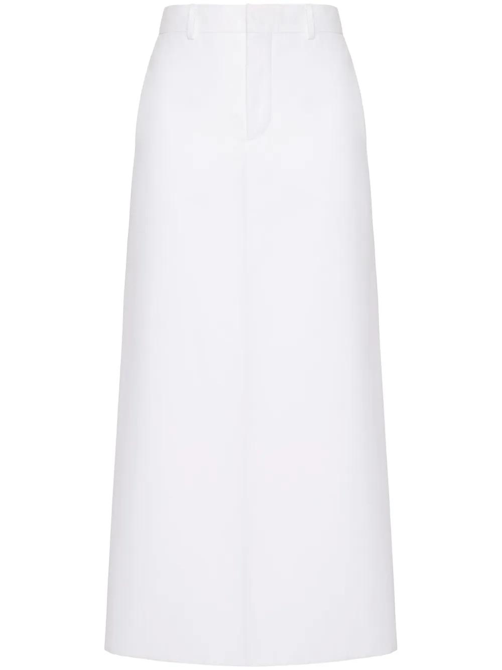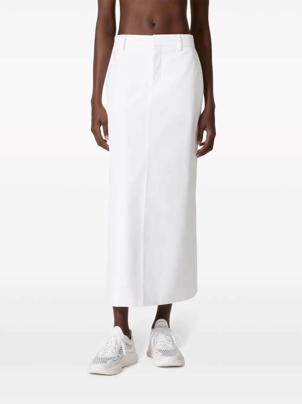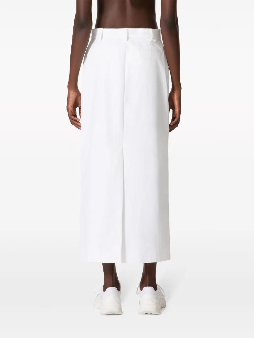 optical white cotton belt loops rear slit straight hem concealed front fastening mid-length