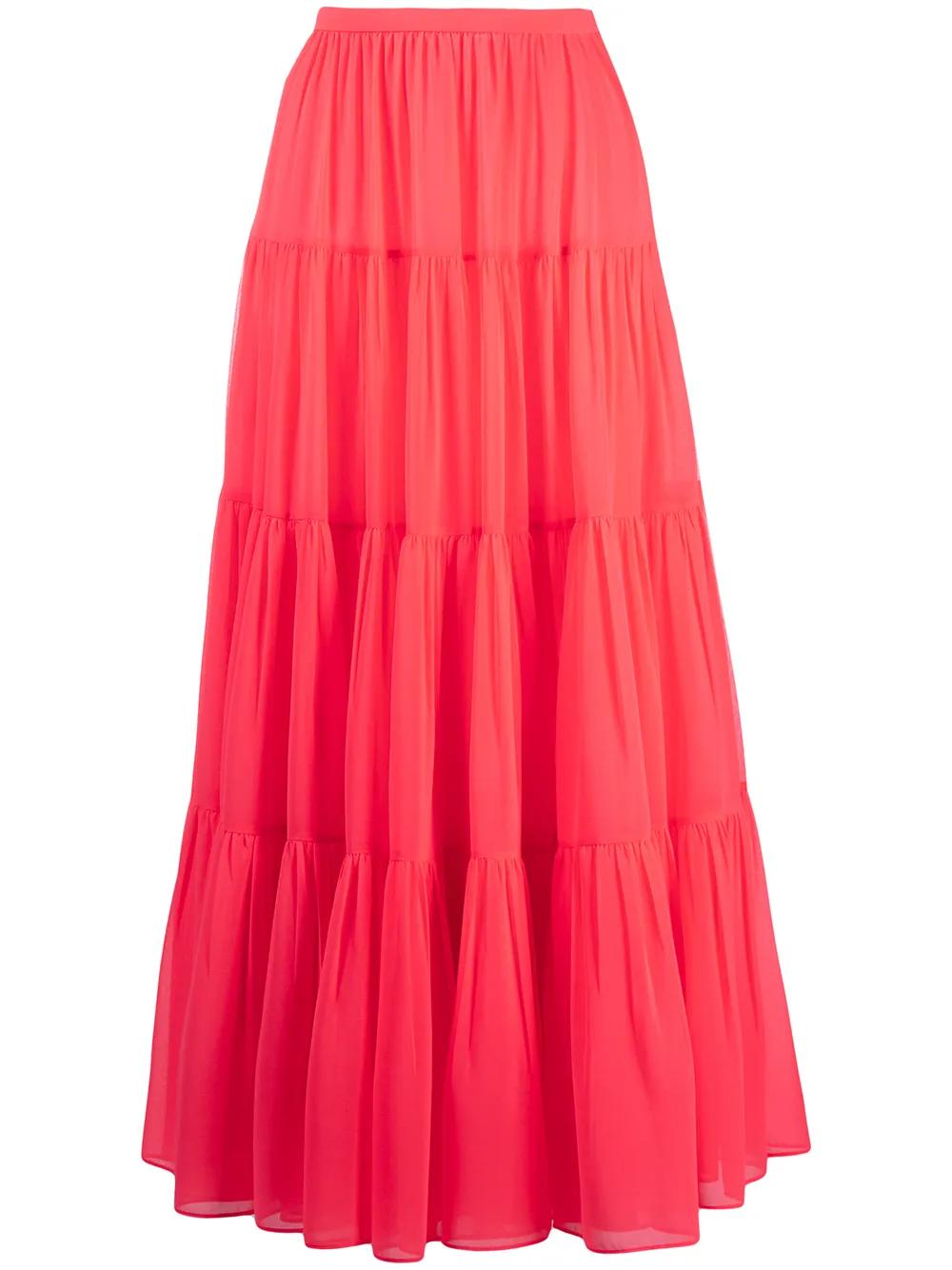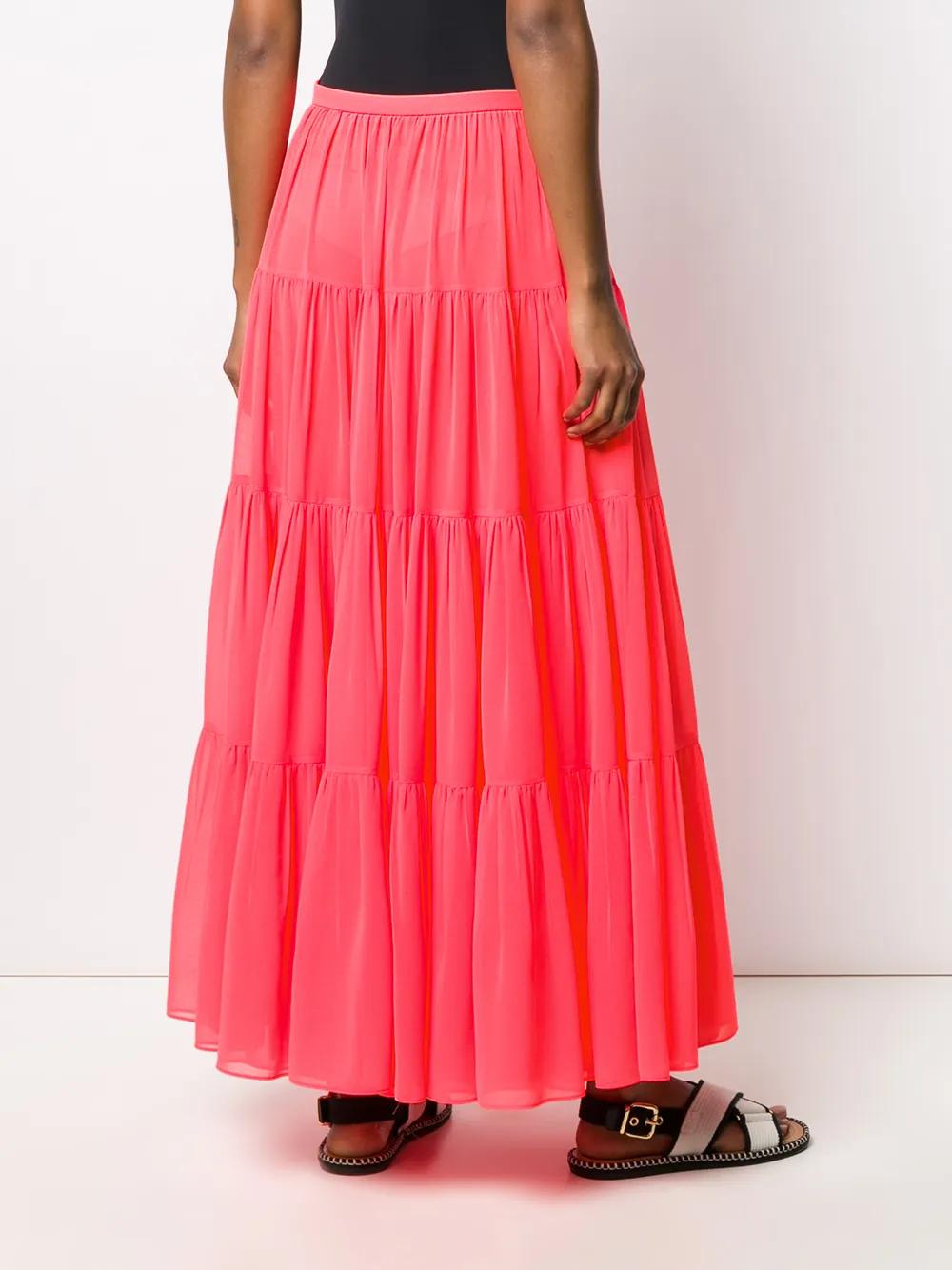 Life isn't always black and white, so why should your wardrobe be? Crafted with a tiered design, this neon pink skirt from Valentino will brighten up your wardrobe and your days. Don't let it get away. Featuring a high waist, a concealed side zip fastening, pleated details and a long length.