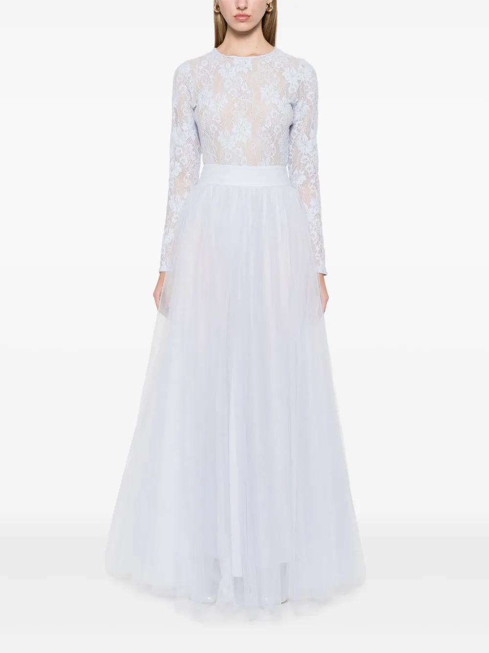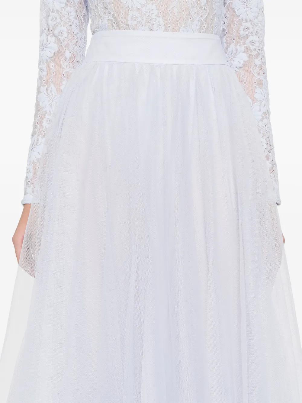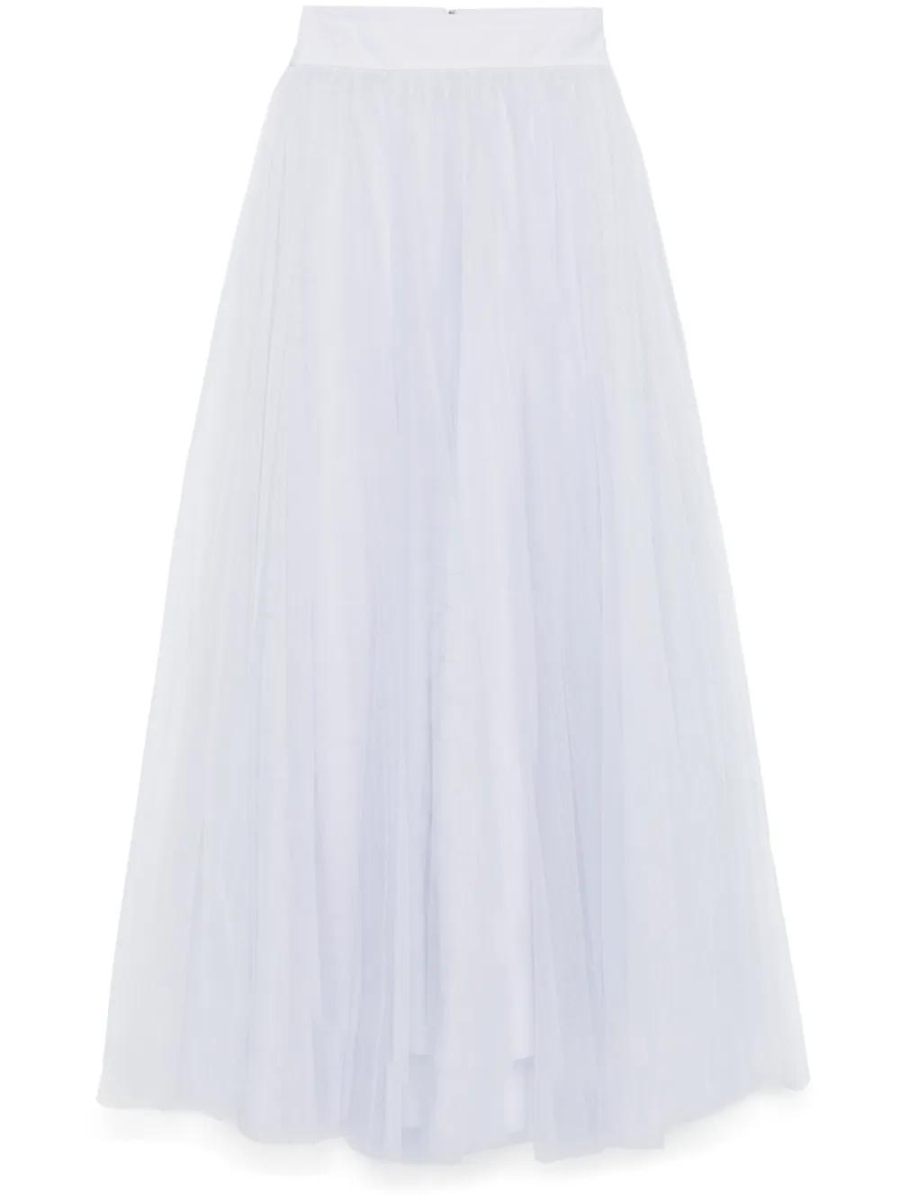 light blue tulle overlay concealed rear hook and zip fastening high waist flared skirt full lining straight hem long length