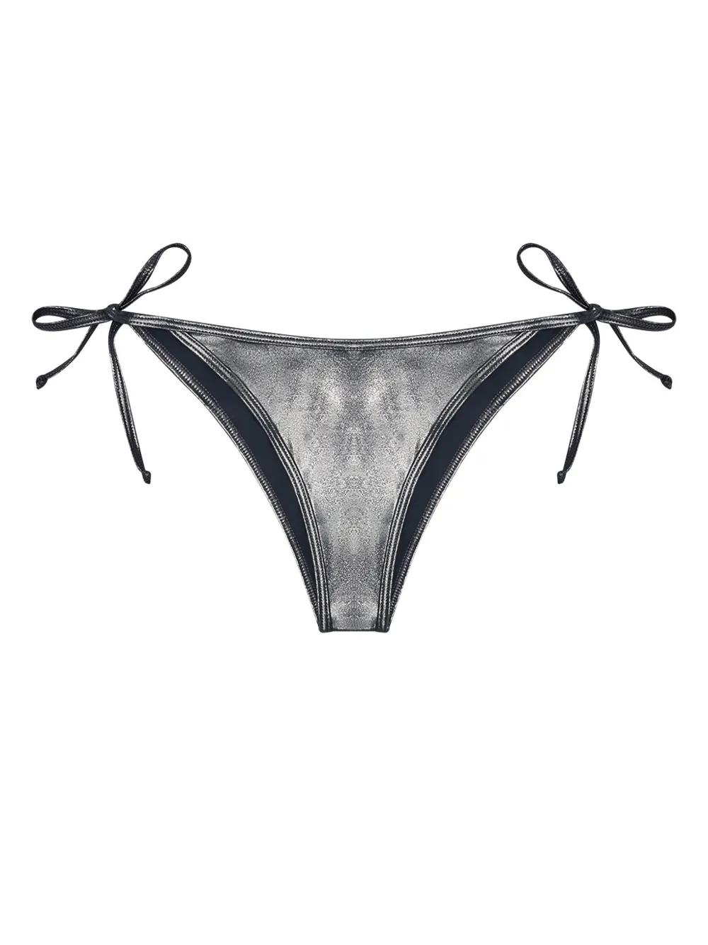 black self-tie fastening triangle cup Be mindful to try on swimwear over your own garments.