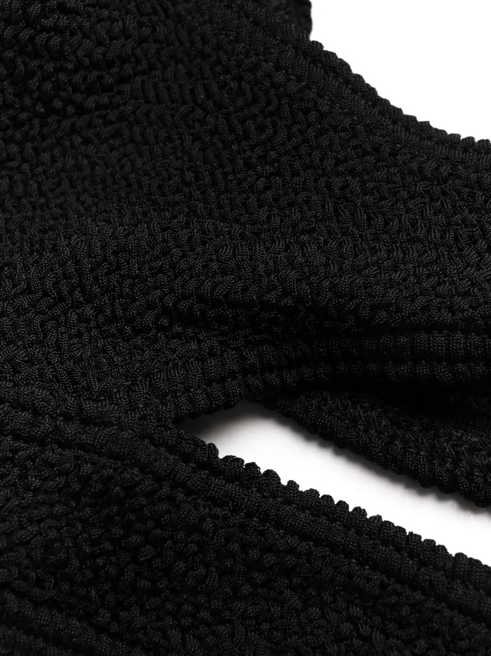 black crinkled finish cut-out detailing scoop neck bralette style Be mindful to try on swimwear over your own garments.