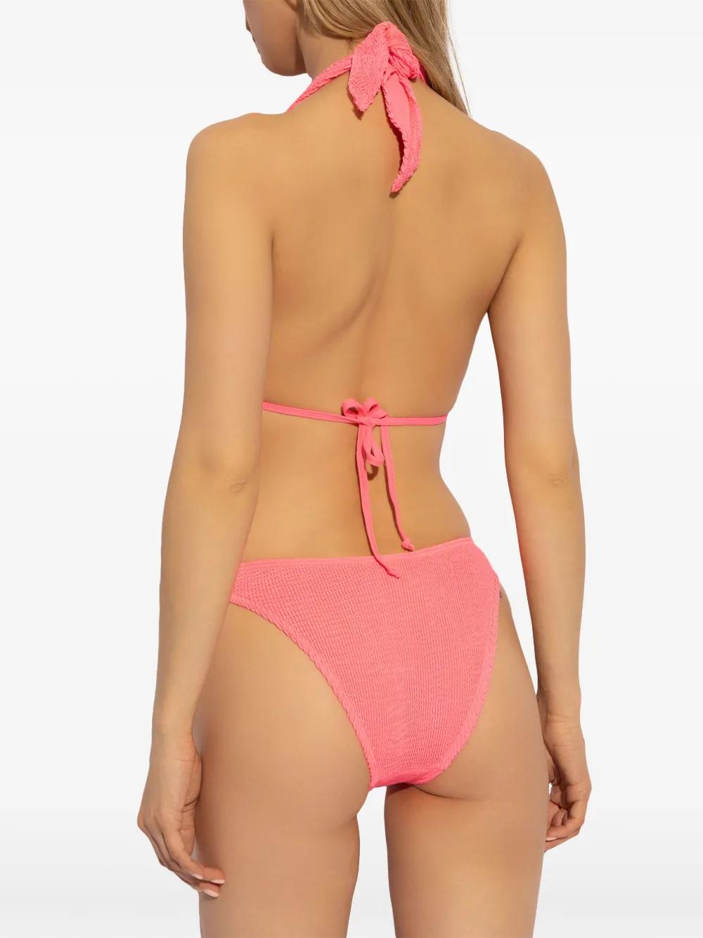 pink rear lace-up fastening halterneck tie fastening smocking details Be mindful to try on swimwear over your own garments.