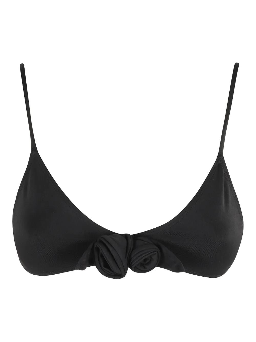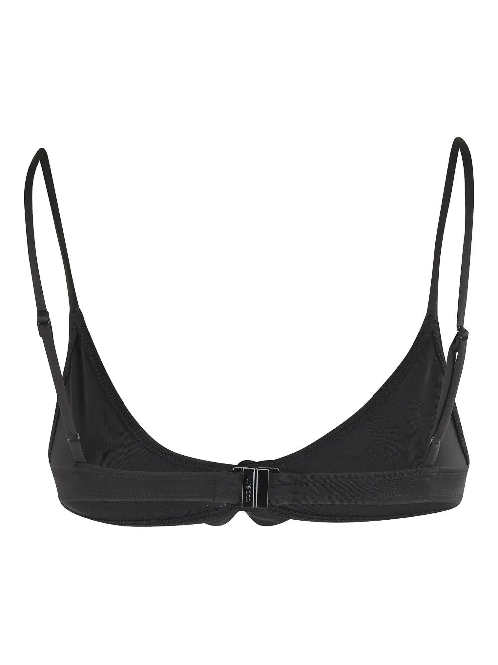 black rear clasp fastening adjustable shoulder straps triangle cup Be mindful to try on swimwear over your own garments.