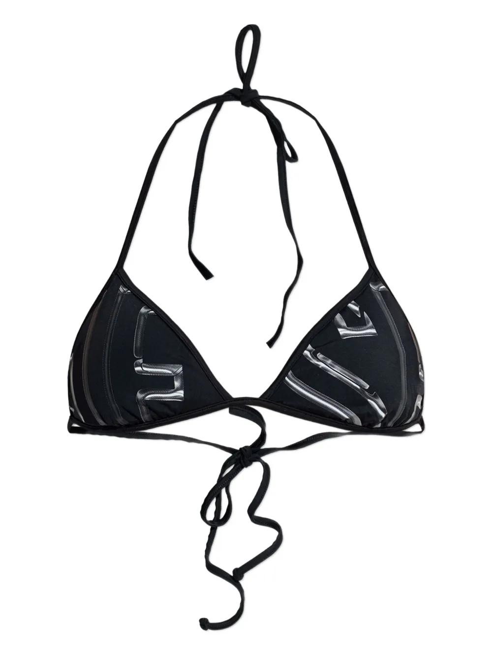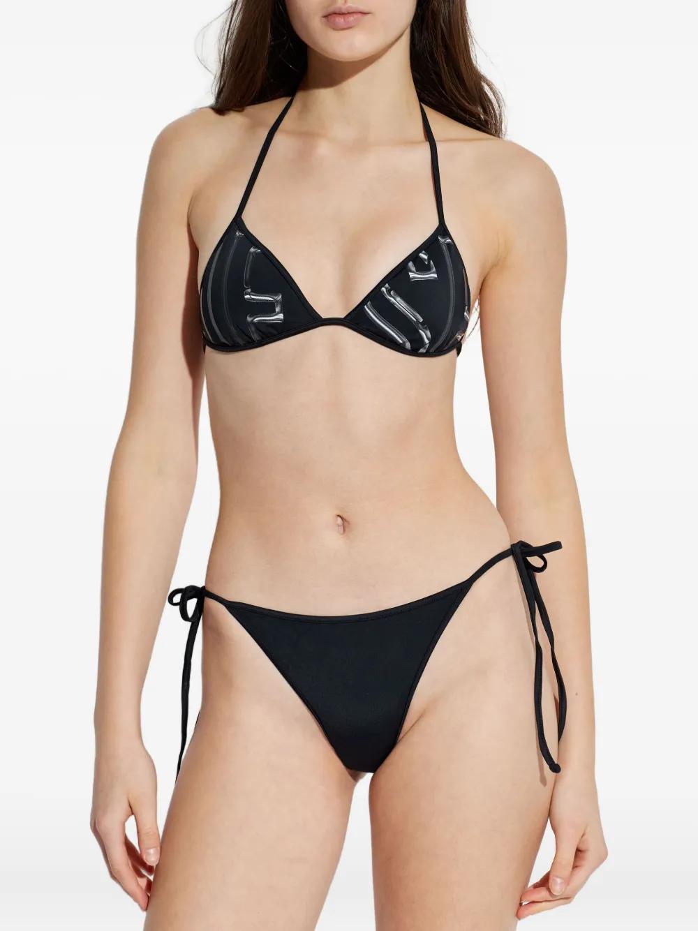 black self-tie fastening logo print Be mindful to try on swimwear over your own garments.