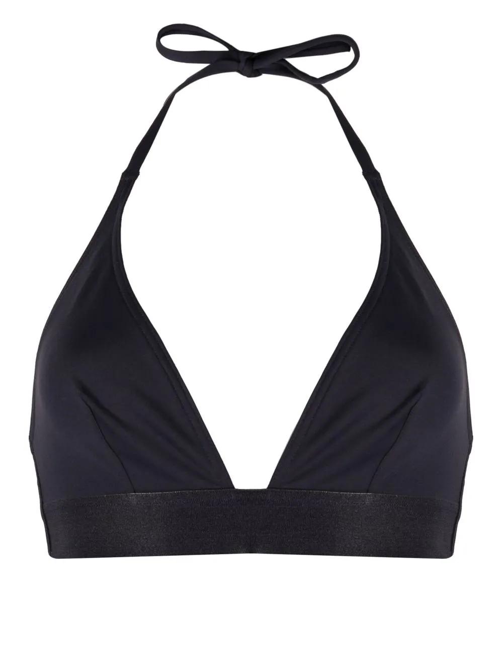 blue stretch-design plunge style halterneck tie fastening triangle cup rear hook fastening Be mindful to try on swimwear over your own garments.