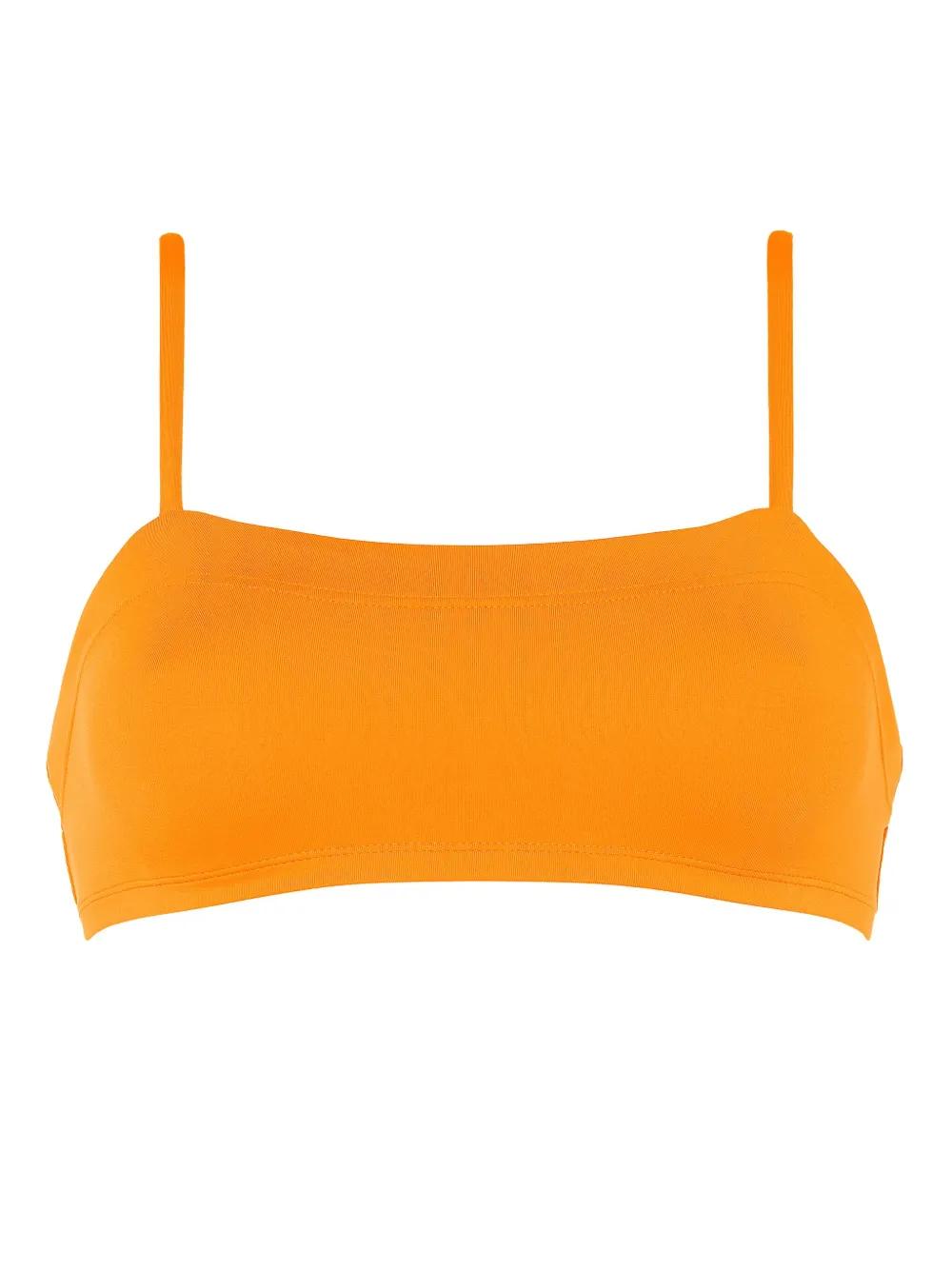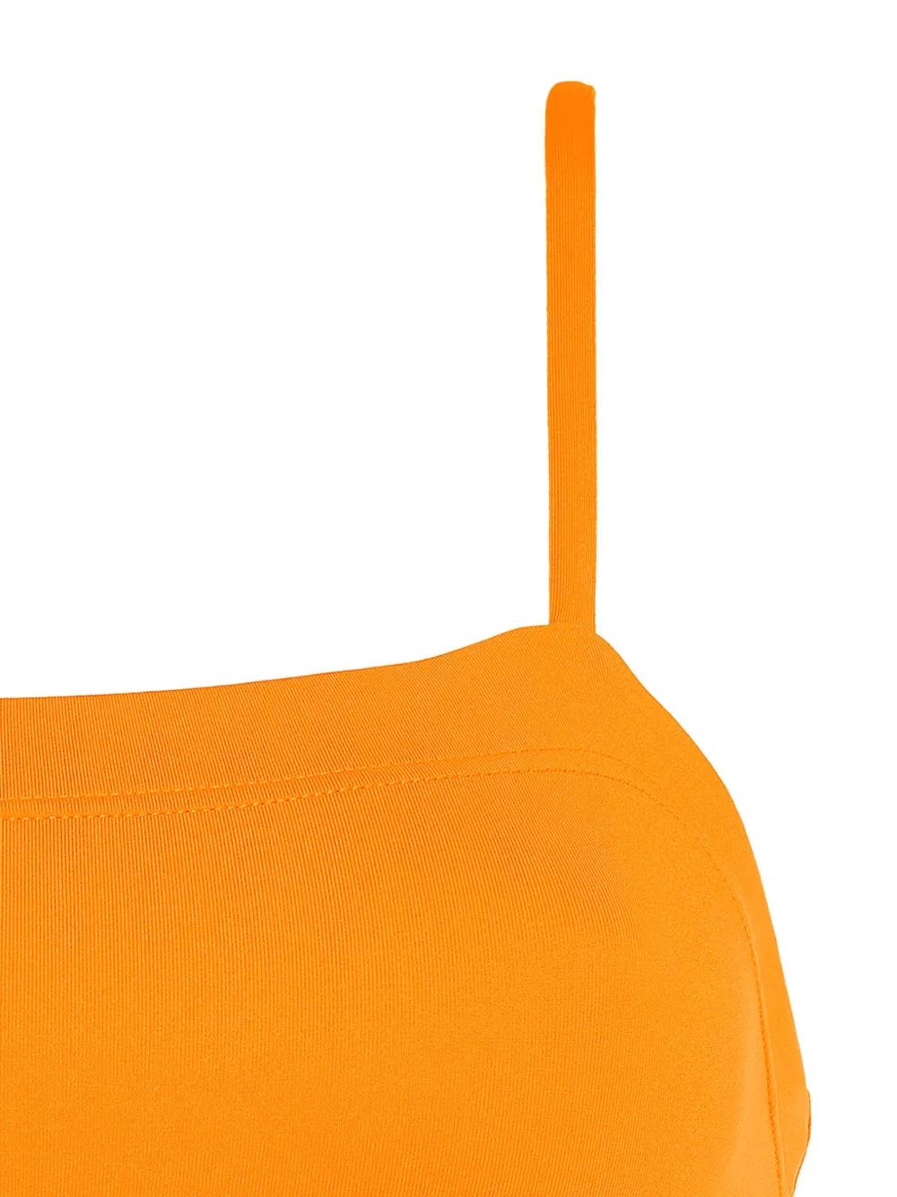 orange pull-on style square neck spaghetti straps Be mindful to try on swimwear over your own garments.