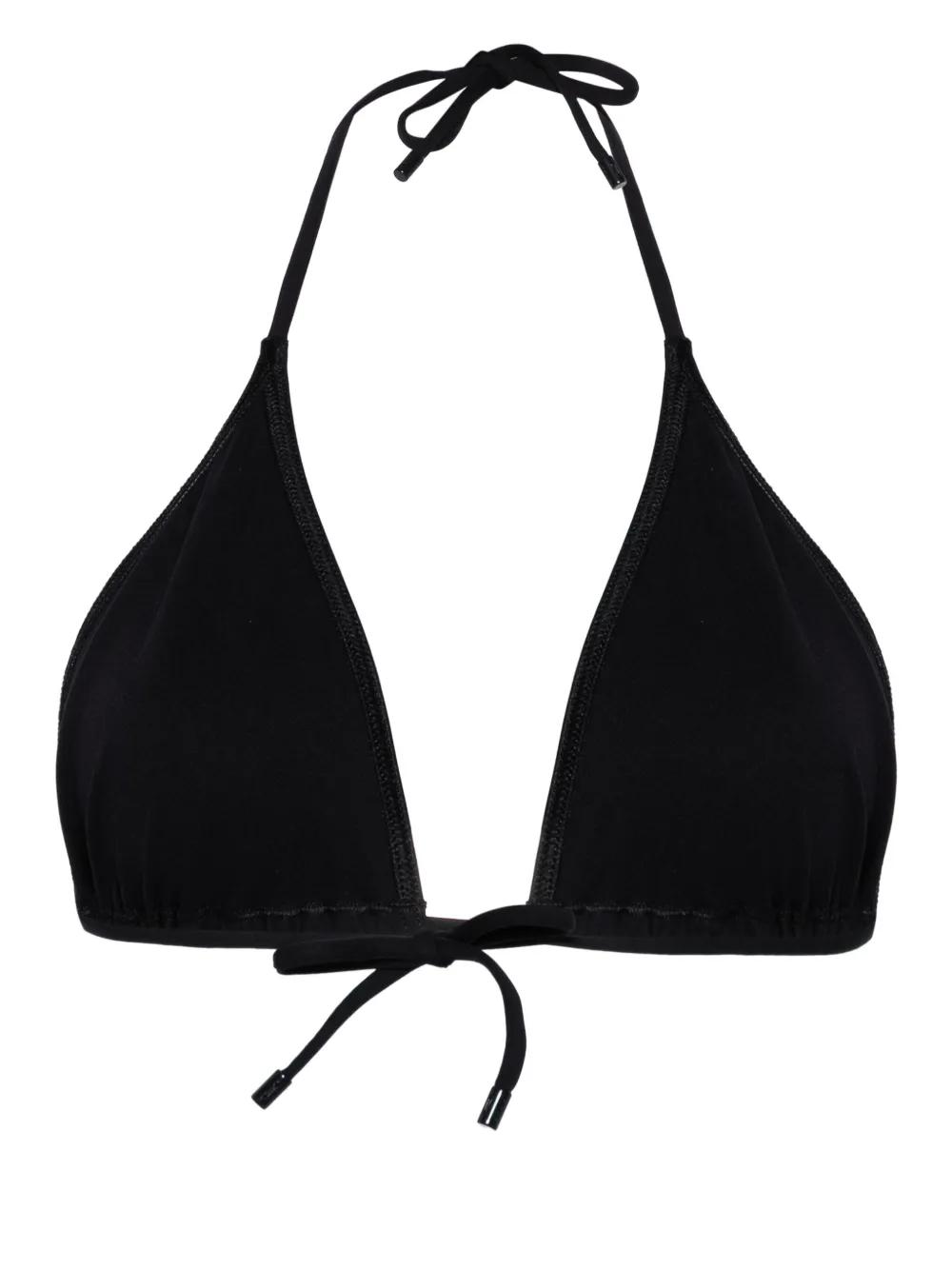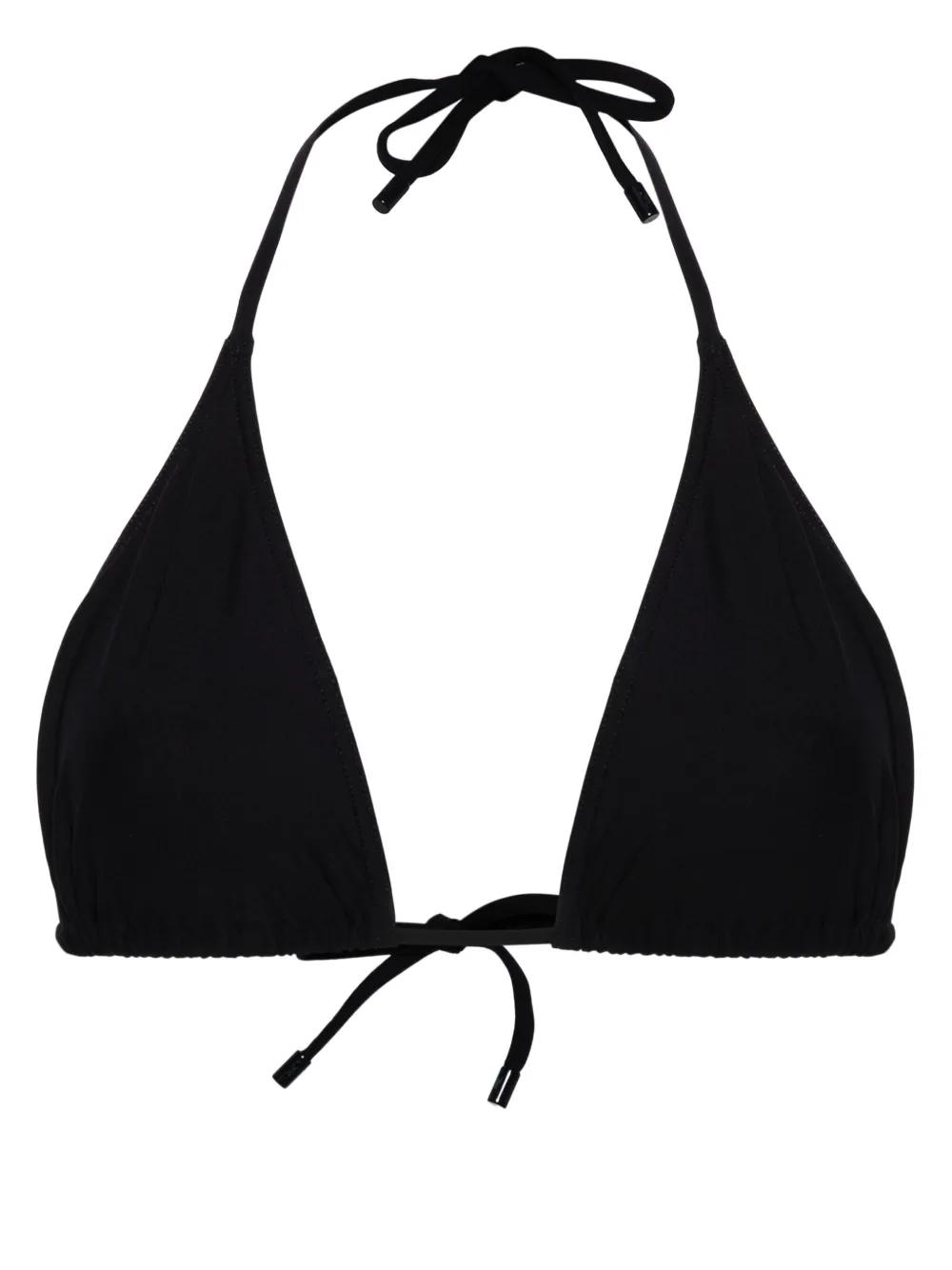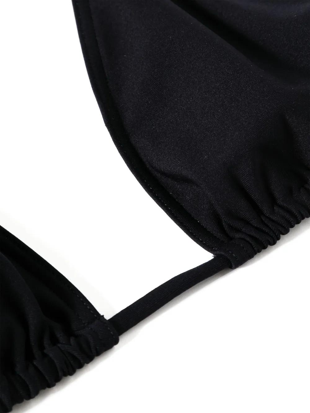 black stretch-design triangle shape halterneck tie fastening rear tie fastening Be mindful to try on swimwear over your own garments.