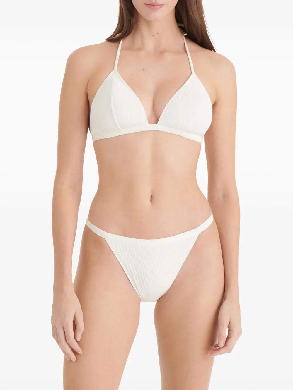 optical white stretch-design gold-tone logo plaque side tie fastening Be mindful to try on swimwear over your own garments.