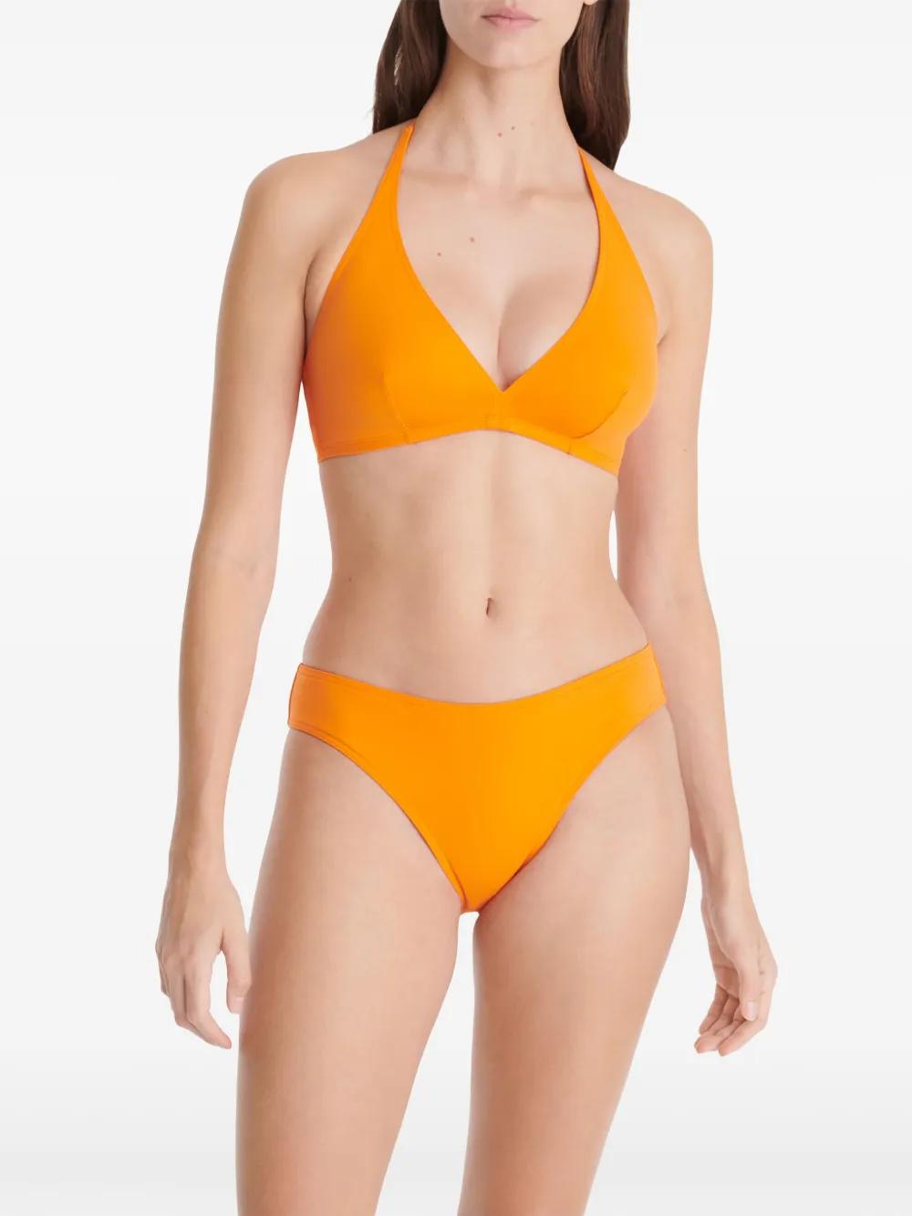 carrot orange halterneck tie fastening rear clasp fastening Be mindful to try on swimwear over your own garments.