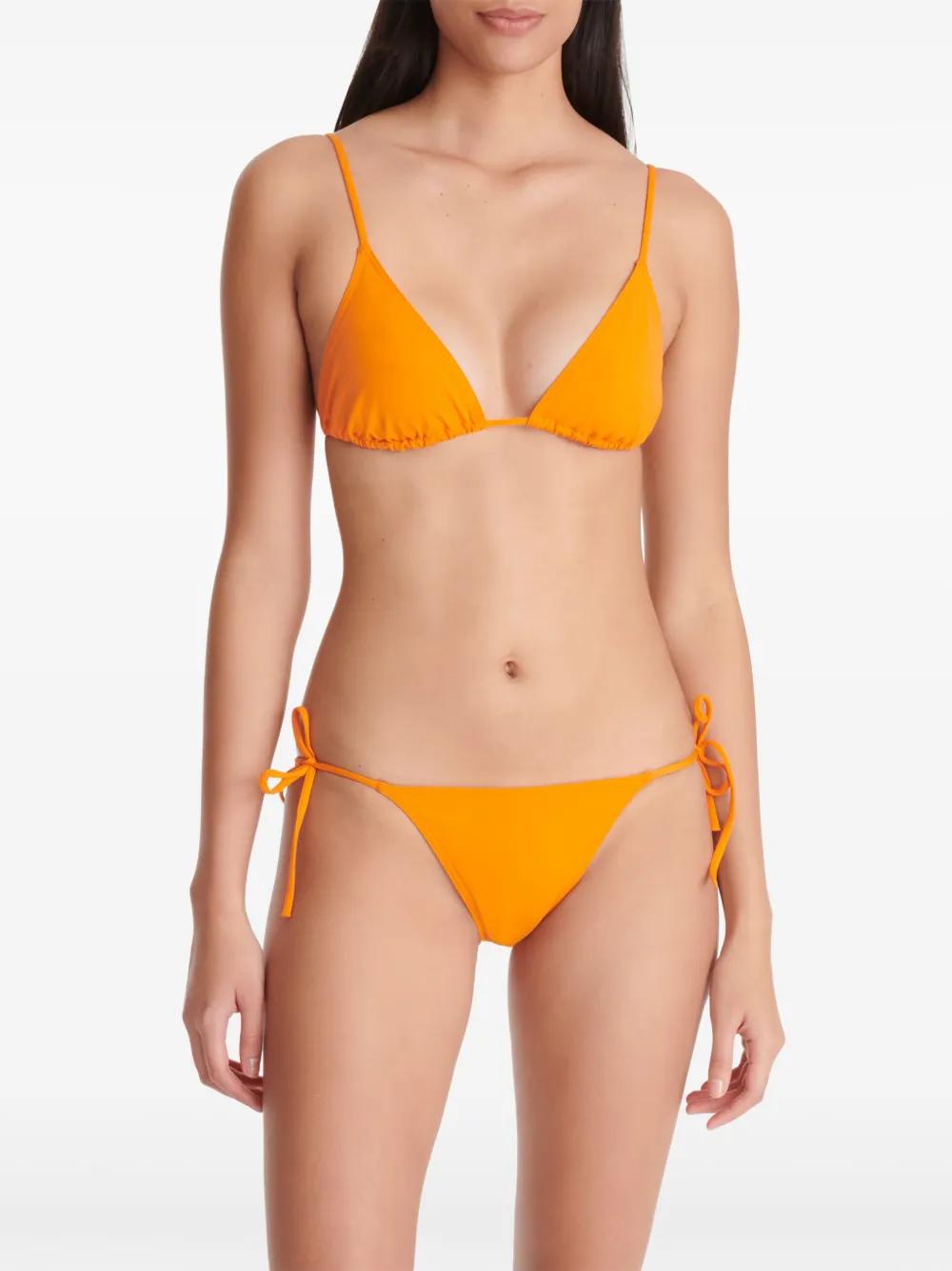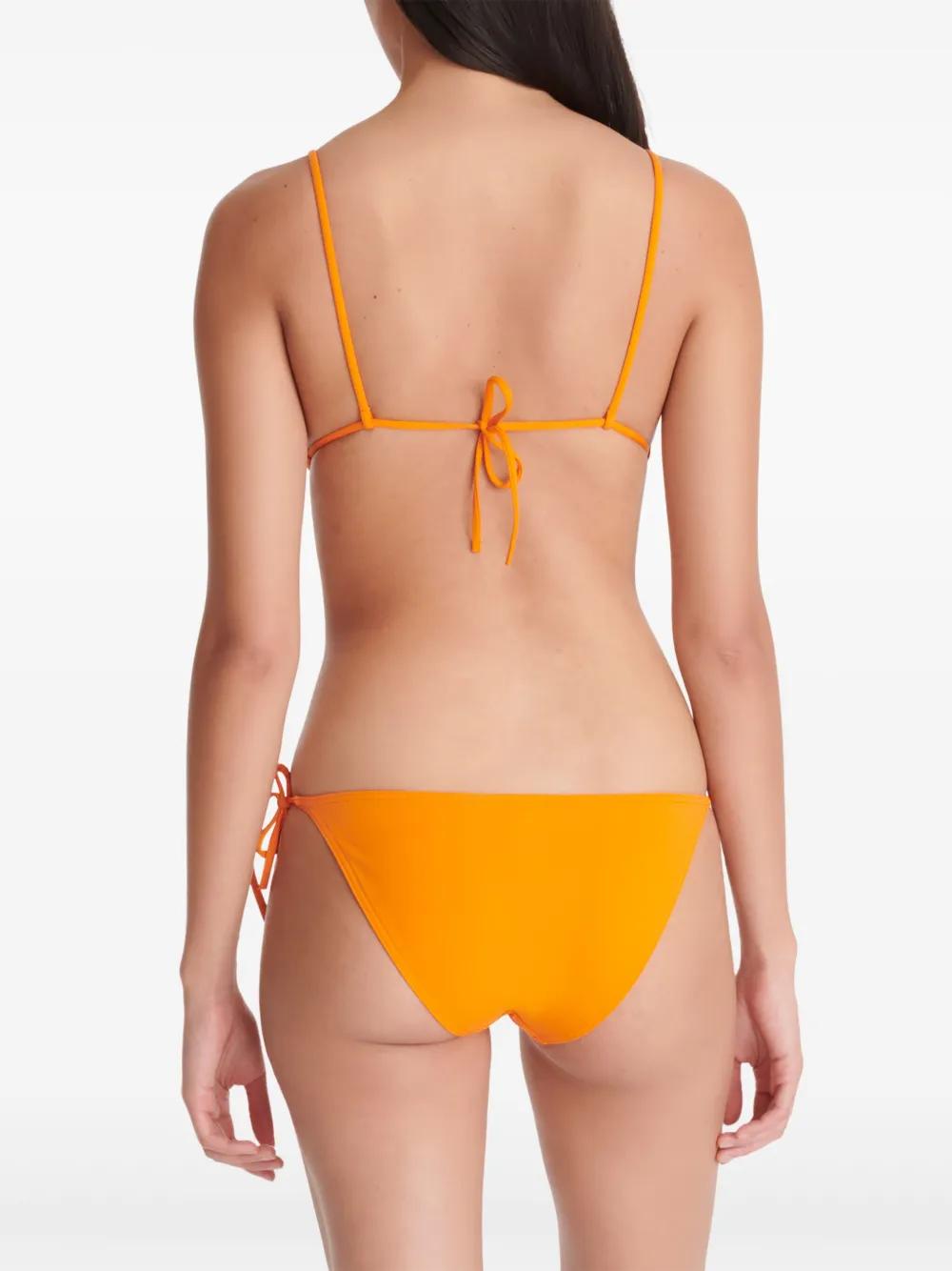 carrot orange stretch-design halterneck triangle cup rear tie fastening adjustable fit Be mindful to try on swimwear over your own garments.