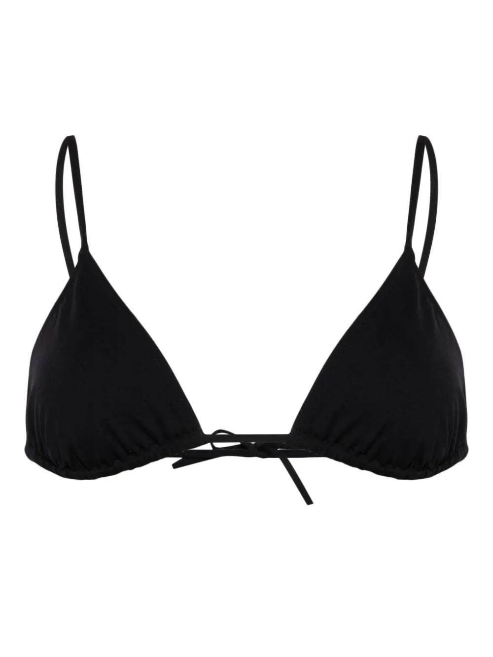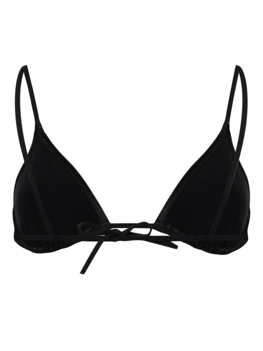black stretch-design triangle cup spaghetti straps rear tie fastening Be mindful to try on swimwear over your own garments.