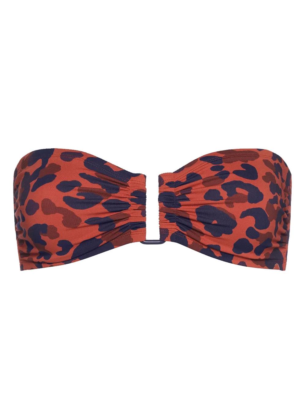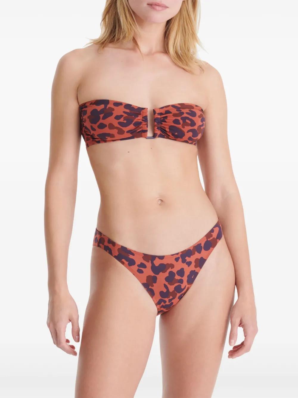 brown/multicolour rear clasp fastening spotted print U-neck Be mindful to try on swimwear over your own garments.