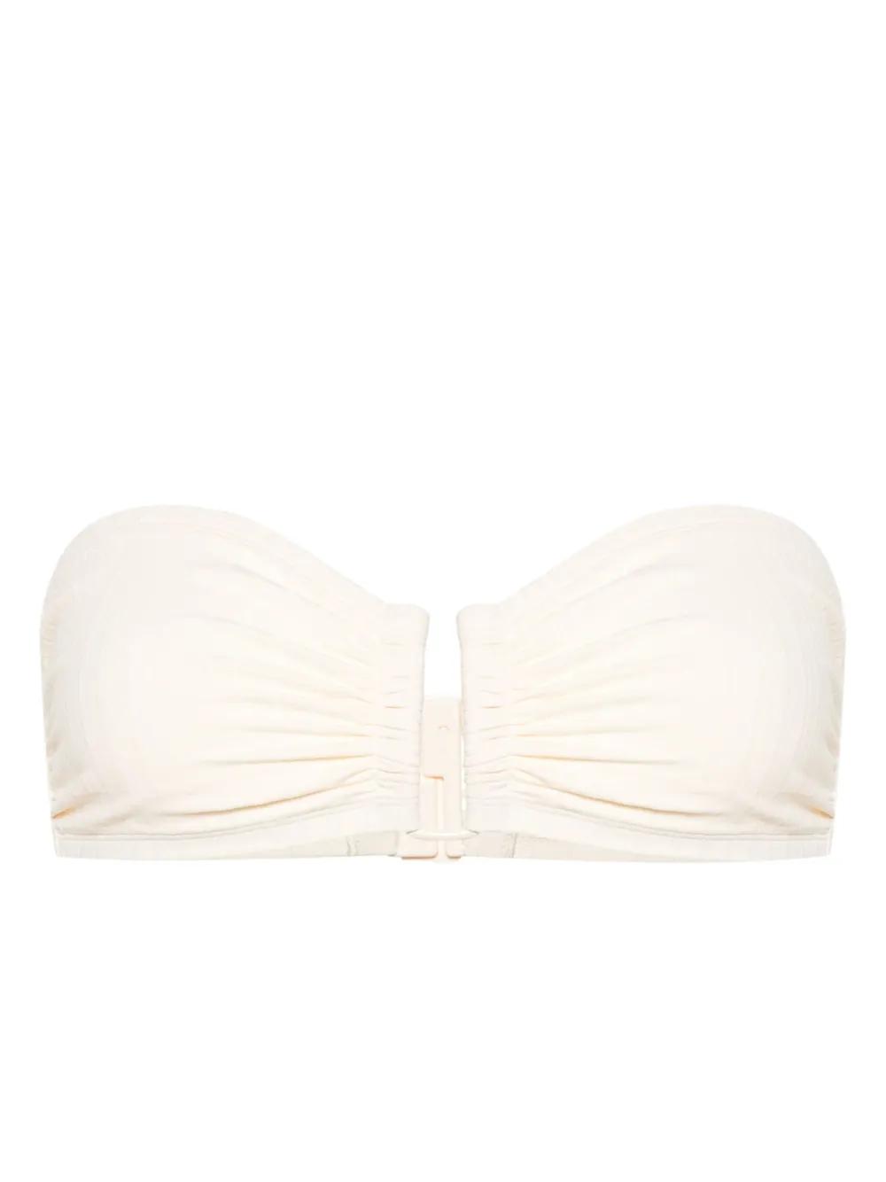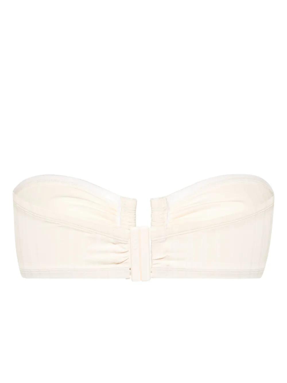 off-white stretch-design ribbed detailing bandeau style strapless U-shaped metal link rear clasp fastening Be mindful to try on swimwear over your own garments.