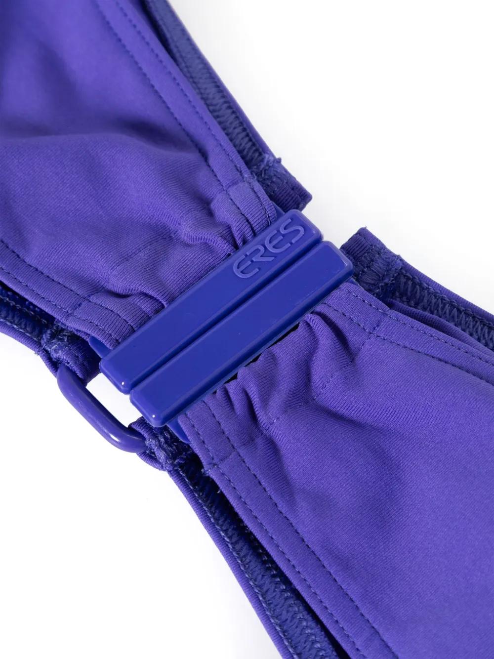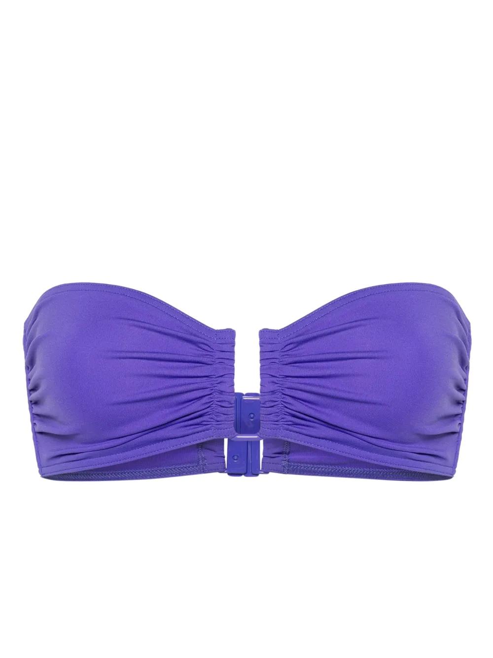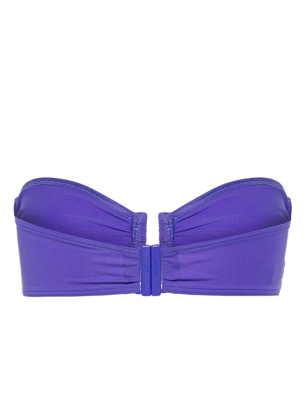violet purple stretch-design bandeau style strapless rear clasp fastening Be mindful to try on swimwear over your own garments.