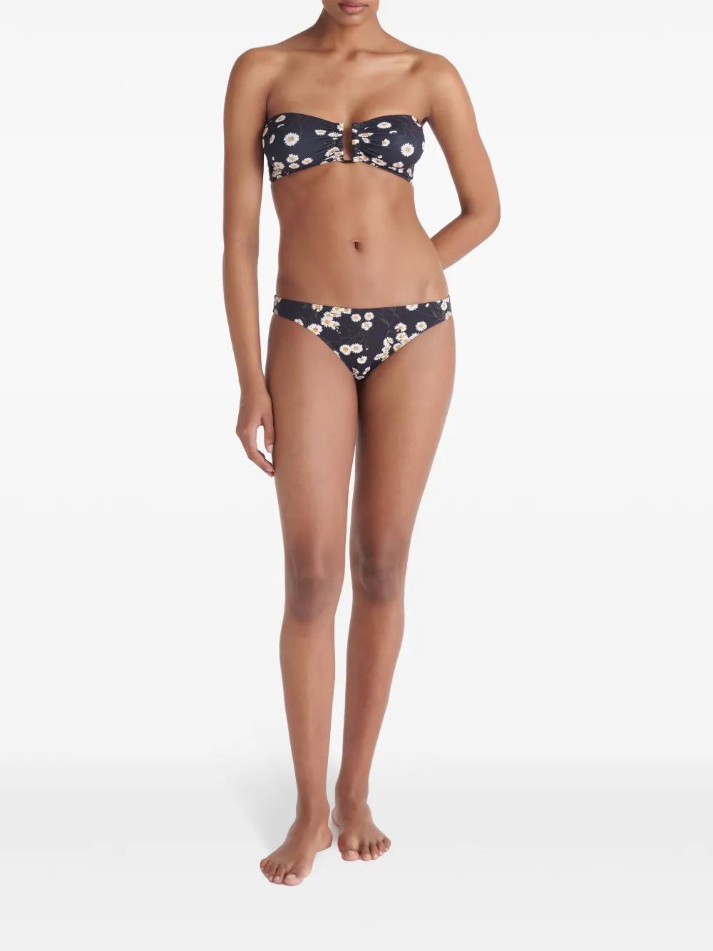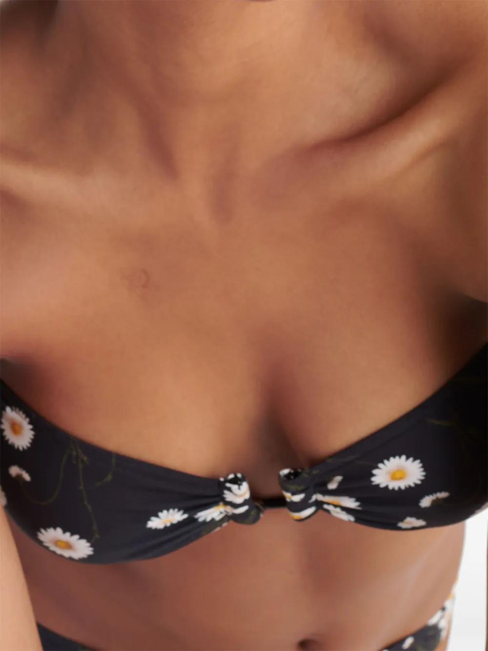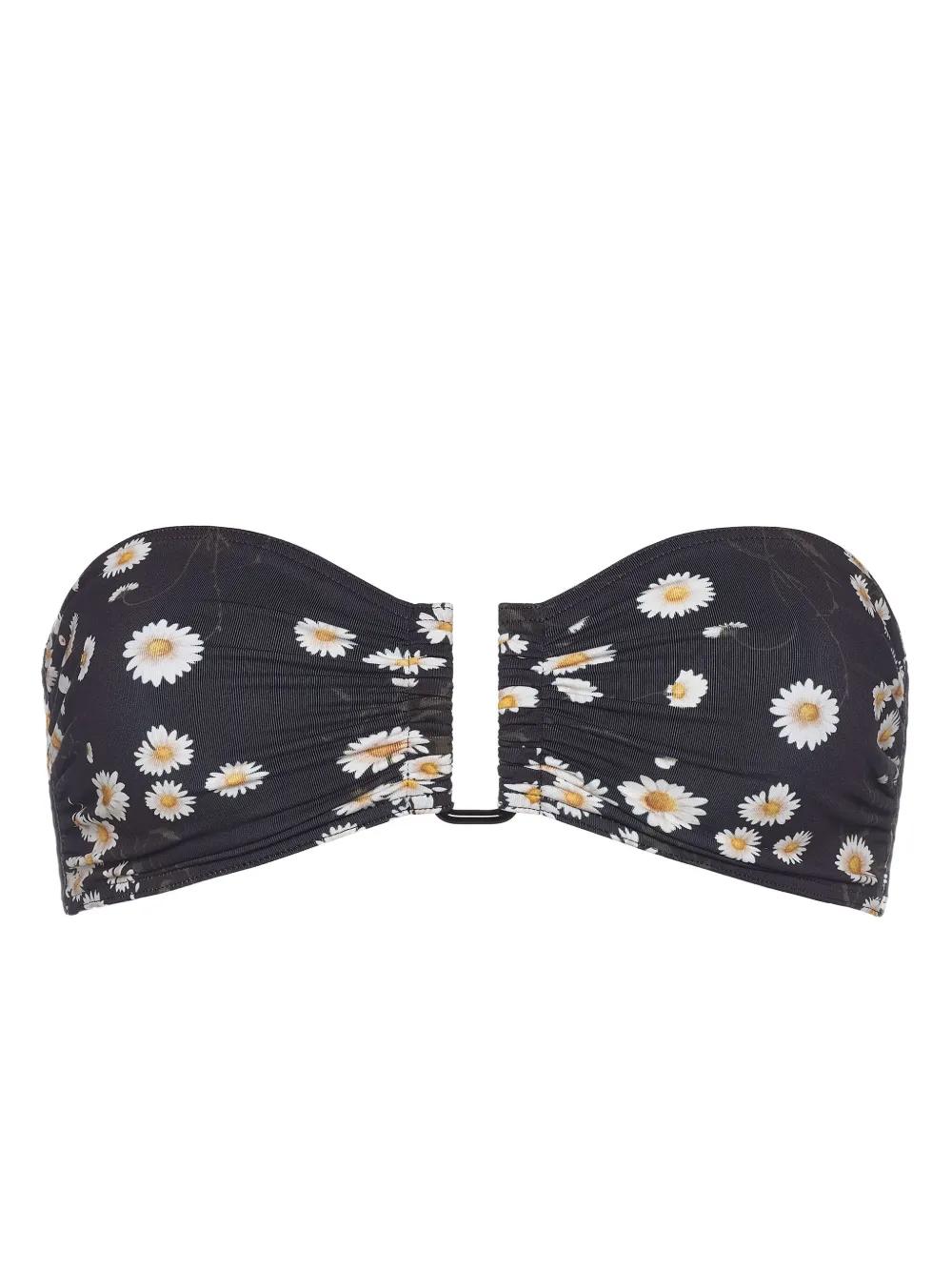 black/multicolour stretch-design all-over floral print bandeau style ruched detailing sweetheart neck rear clasp fastening strapless Be mindful to try on swimwear over your own garments.