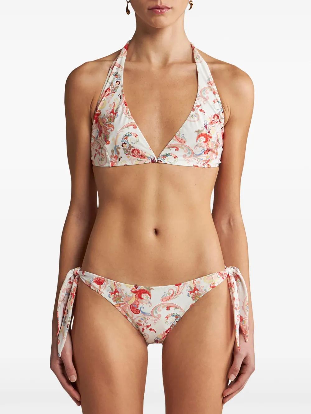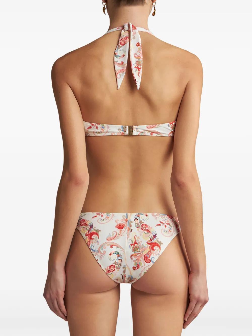 white/multicolour stretch-design all-over paisley print triangle cup halterneck tie fastening rear clasp fastening square open back elasticated underband full liningBottoms: elasticated waistband side tie fastening full lining set of two Be mindful to try on swimwear over your own garments.