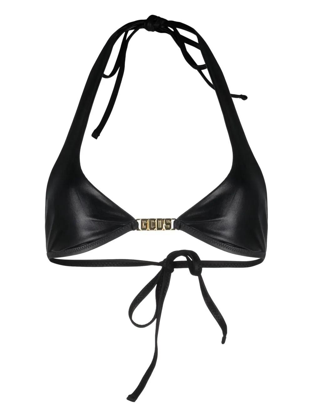 GCDS logo-plaque halterneck bikini top - Black