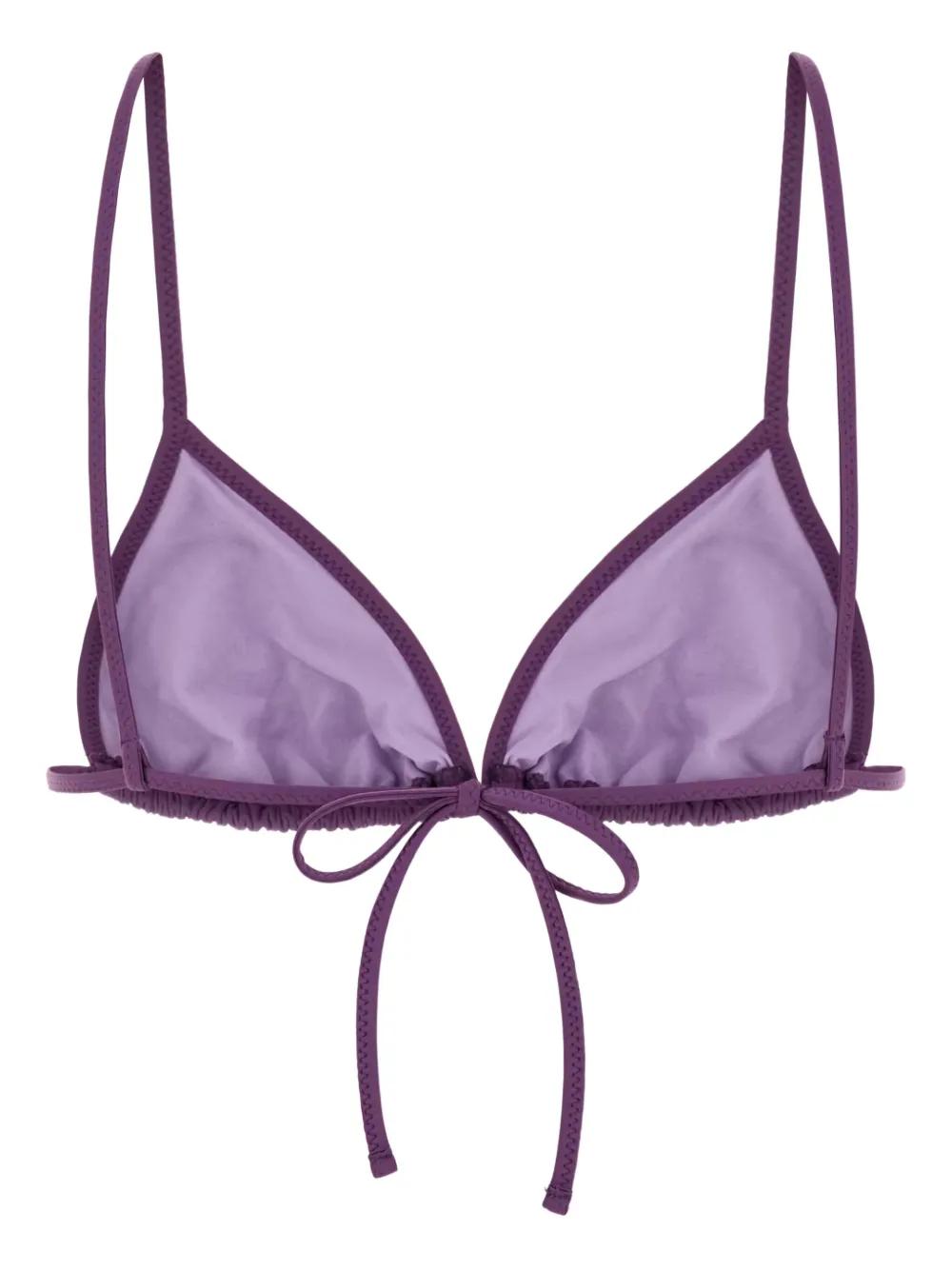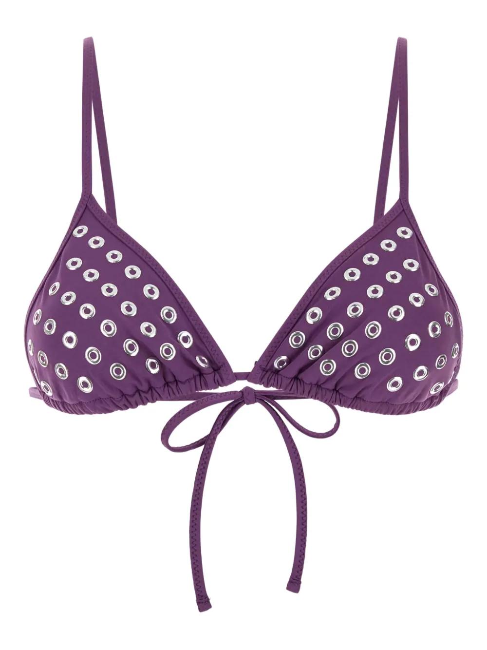 purple eyelet detail stretch design rear tie fastening triangle cup