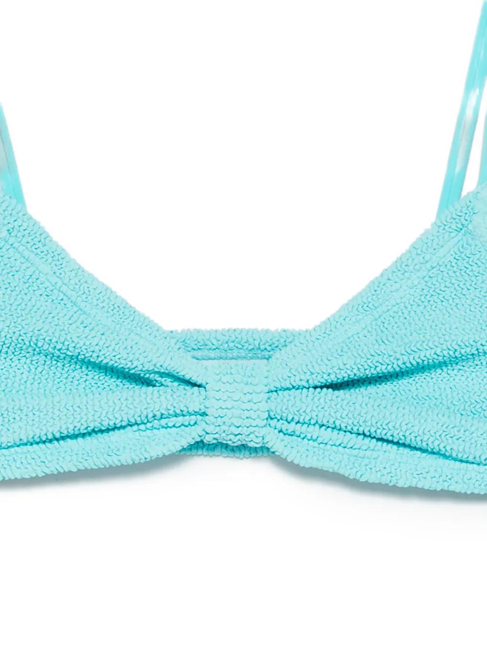 blue textured finish knot detail thin straps two-piece set Be mindful to try on swimwear over your own garments.