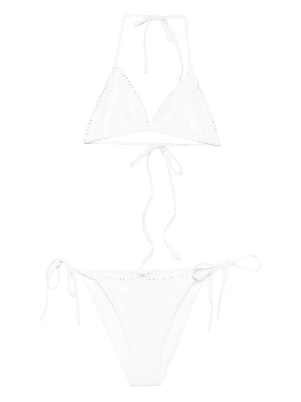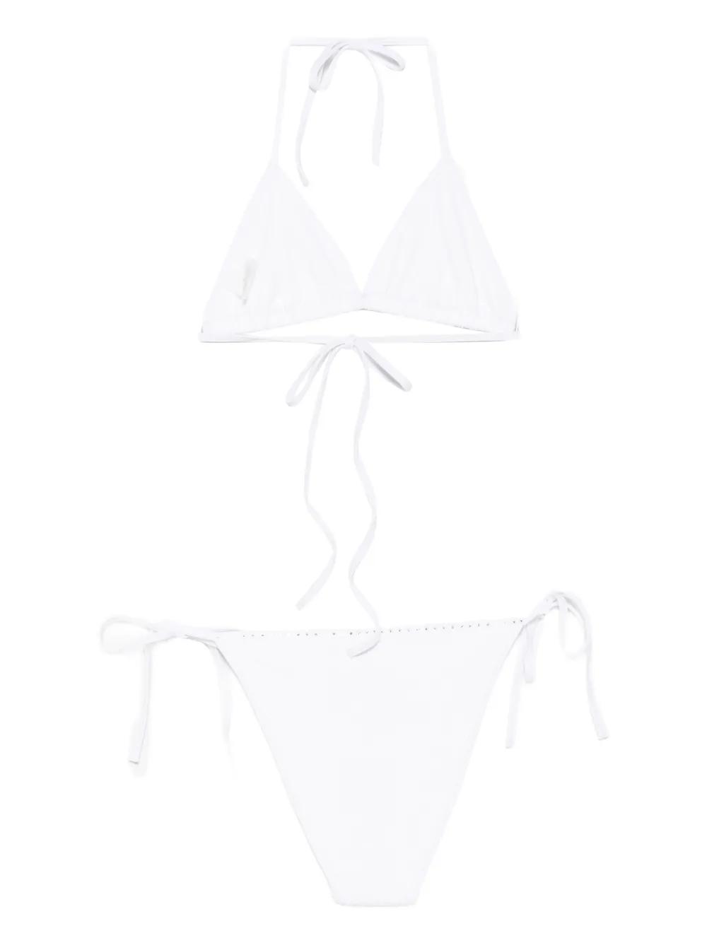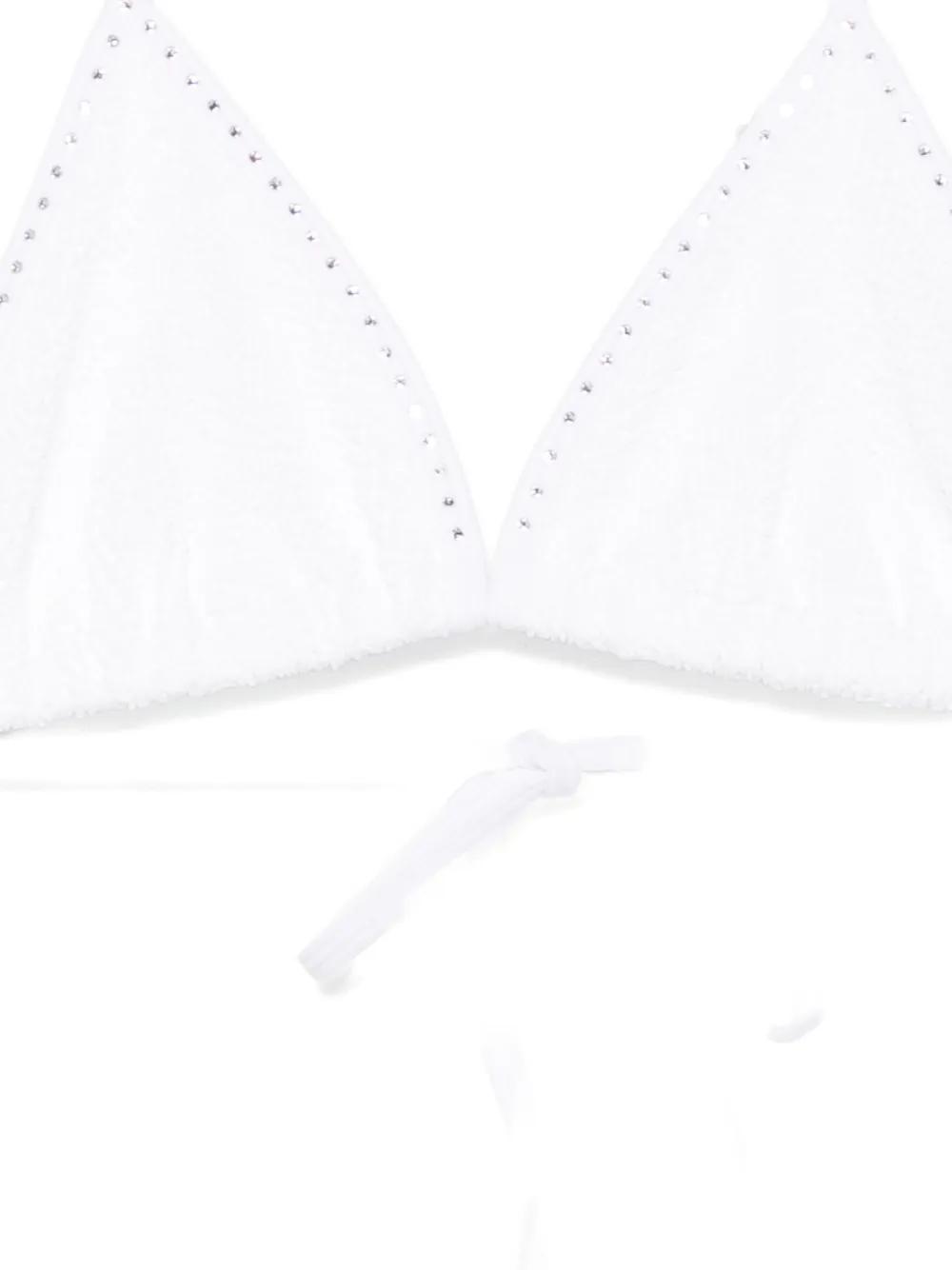 white textured finish crystal embellishment side tie fastening Be mindful to try on swimwear over your own garments.