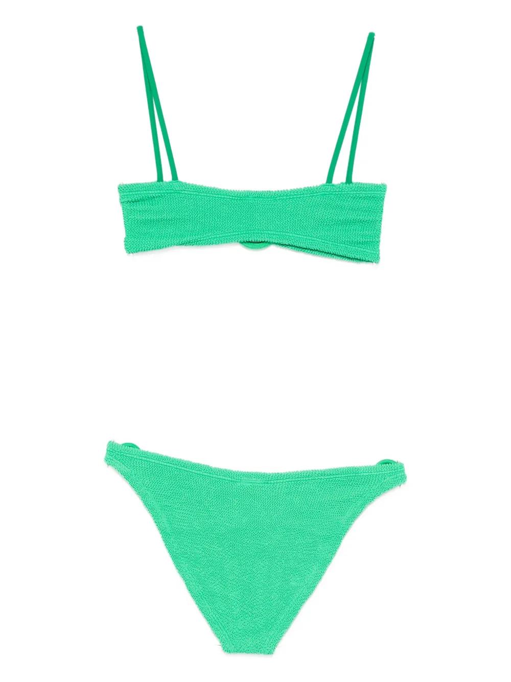 emerald green textured finish hoop details thin straps Be mindful to try on swimwear over your own garments.