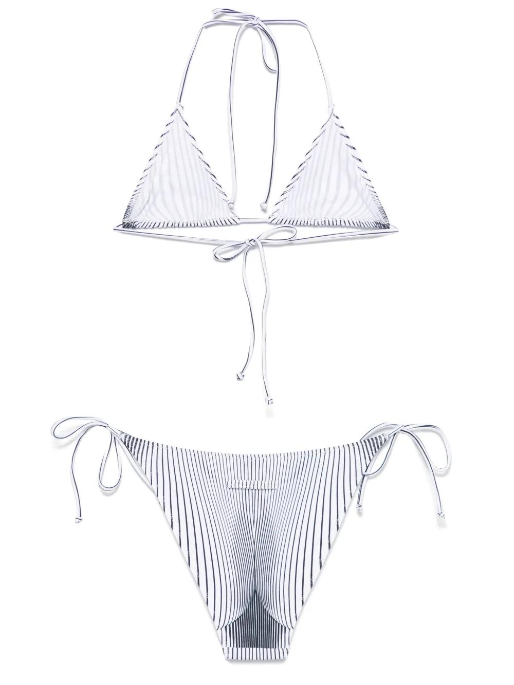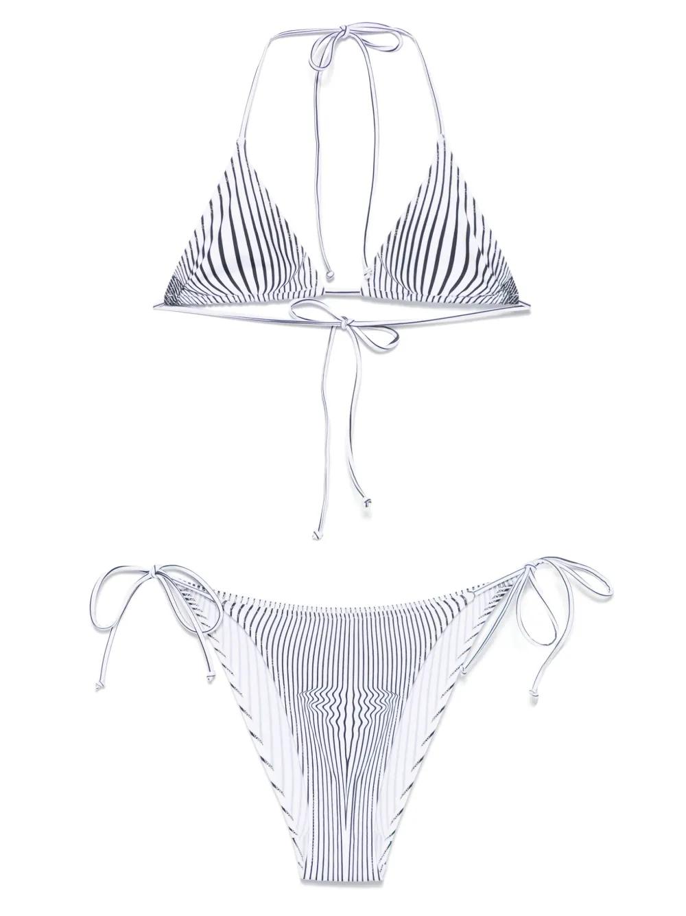 white tie-fastening straps triangle cup side-tie bottoms Be mindful to try on swimwear over your own garments.