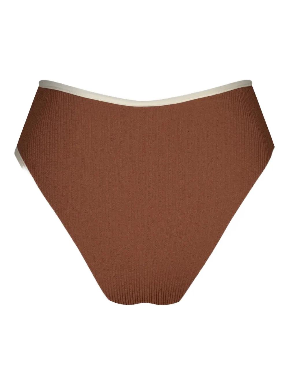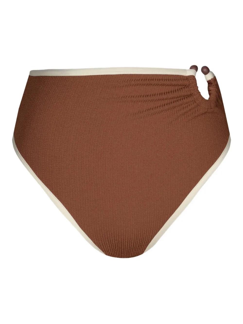 brown crinkle texture ring detail contrast trim Be mindful to try on swimwear over your own garments.