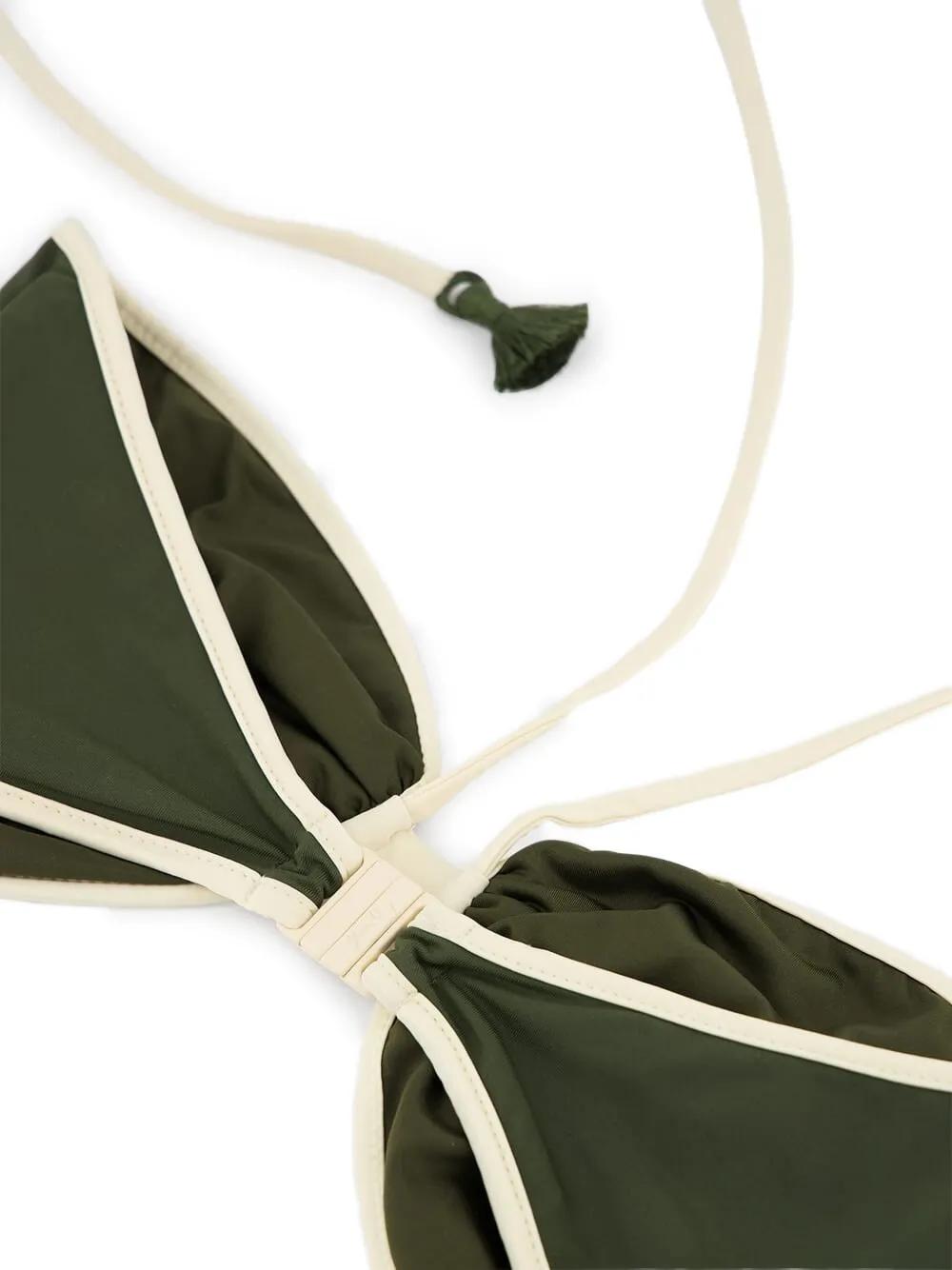 green halterneck tie fastening rear clasp fastening Be mindful to try on swimwear over your own garments.