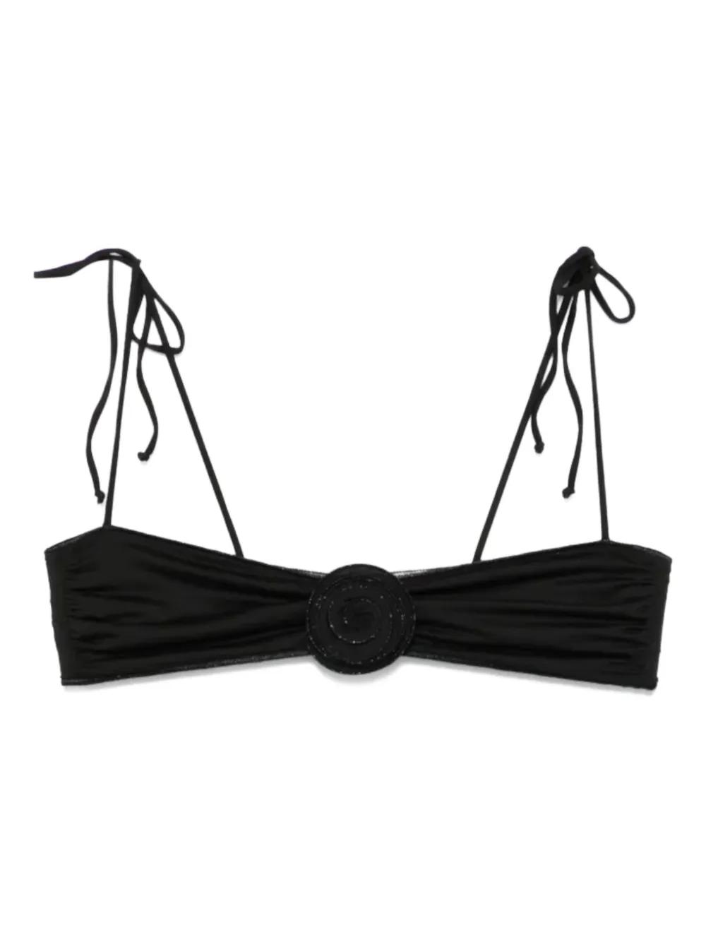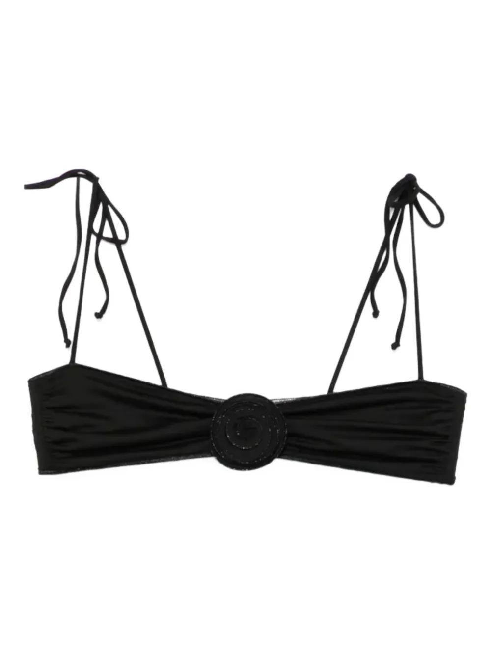 black tie-fastening straps gathered detailing appliqué detail Be mindful to try on swimwear over your own garments.
