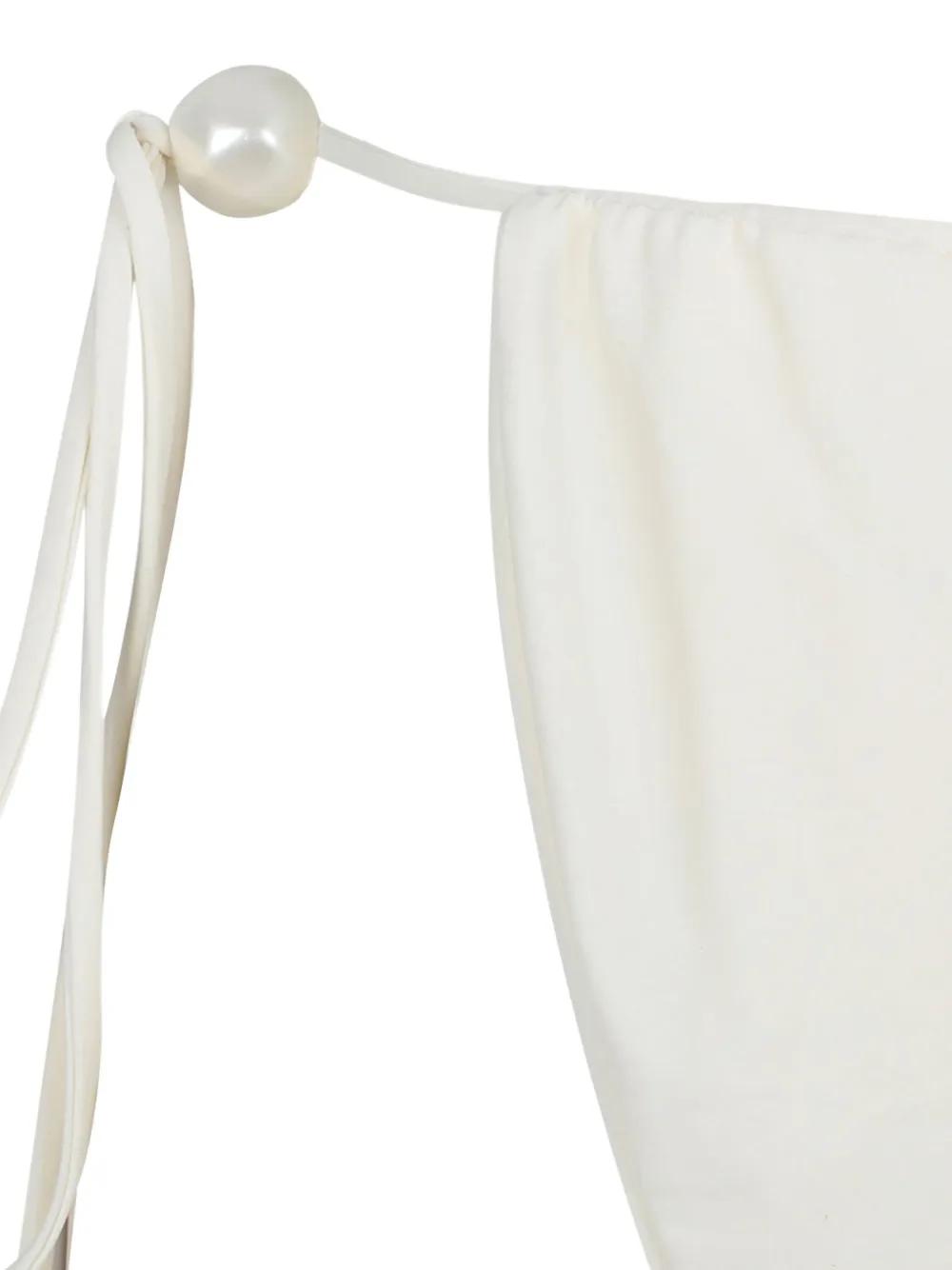 cream tie fastening pearl-effect detail Be mindful to try on swimwear over your own garments.