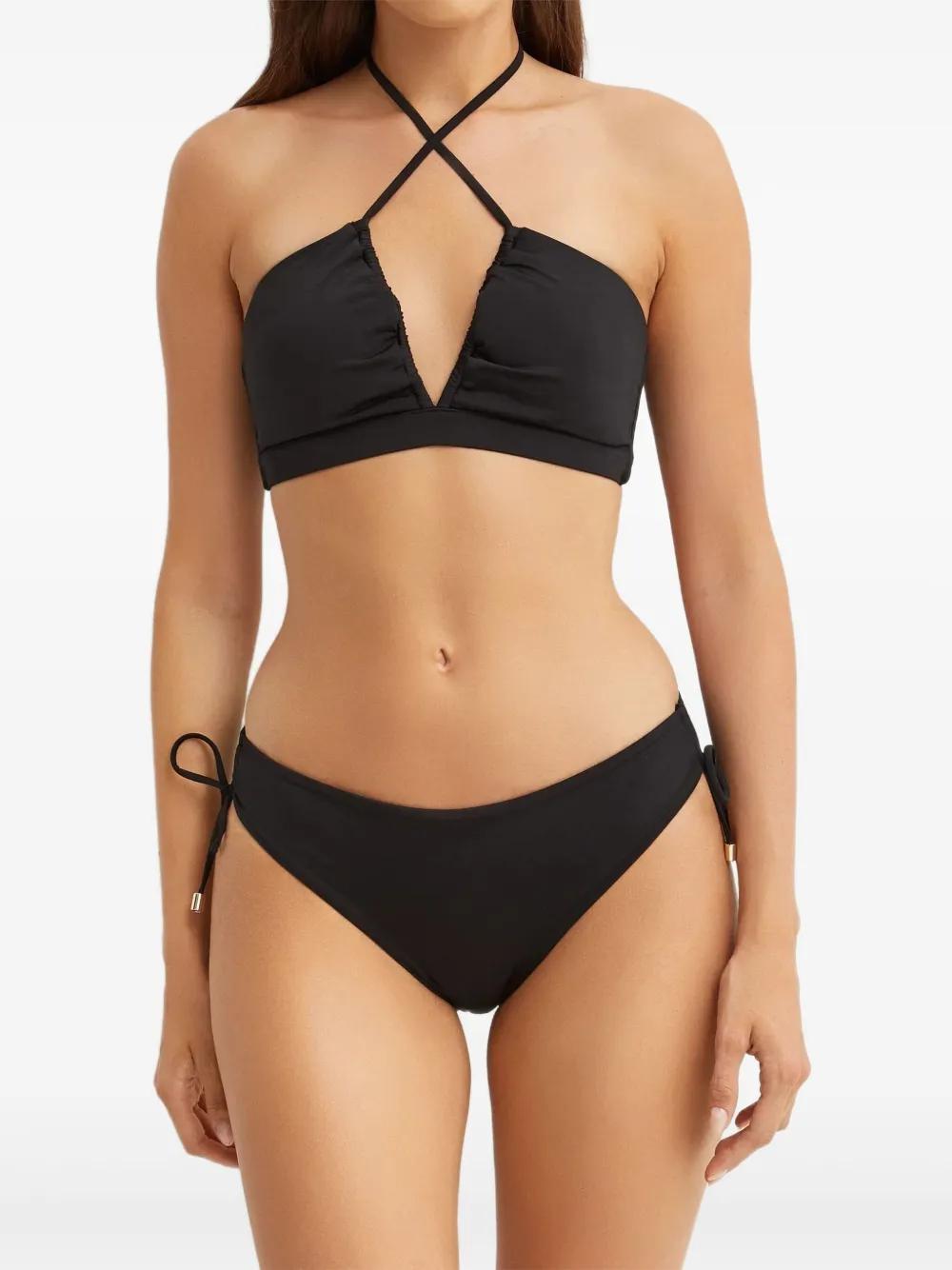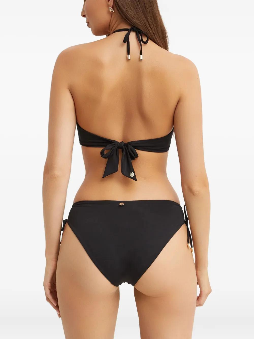 black ties at the neck ties at the back Be mindful to try on swimwear over your own garments.